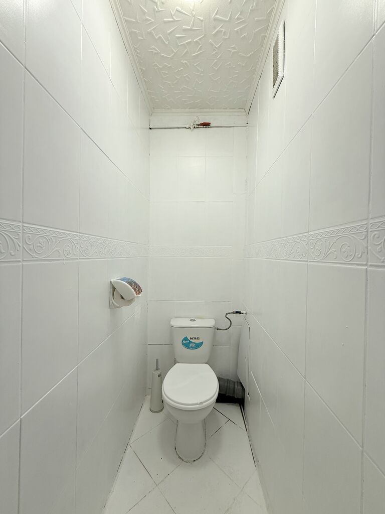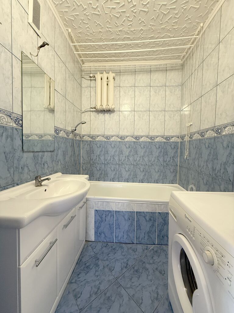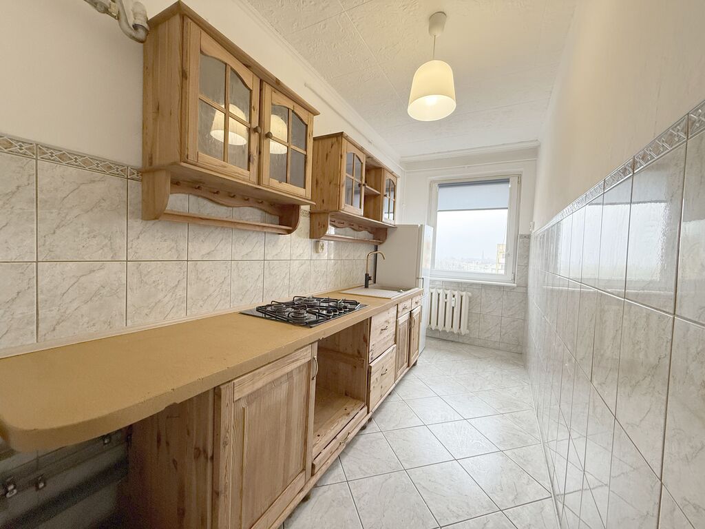 Łazienka i wc osobno, w glazurze i terakocie. W mieszkaniu zostają meble w kuchni wraz z płytą gazową i chłodziarko-zamrażarką oraz pralka w łazience.