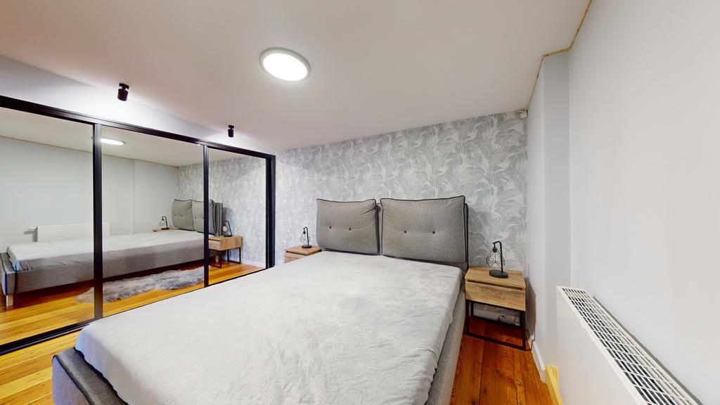 Apartament jest po remoncie podczas którego właściciele zachowali charakterystyczne dla kamienic smaczki wkomponowane w modne i nowoczesne wykończenie, pomieszczenia są duże i ustawne zapewniające wygodę. W salonie i sypialni na podłodze ładna deska, na ścianie częściowo odsłonięta cegła. Części kuchennej ogrzewanie podłogowe a kuchnia zabudowana meblami na wymiar z wysokiej jakości sprzętem AGD. Łazienka z dużym prysznicem wykończona ładnymi kafelkami. Spiżarnia z nowym piecem gazowym i pralką. W korytarzu miejsce na odzież wierzchnią.