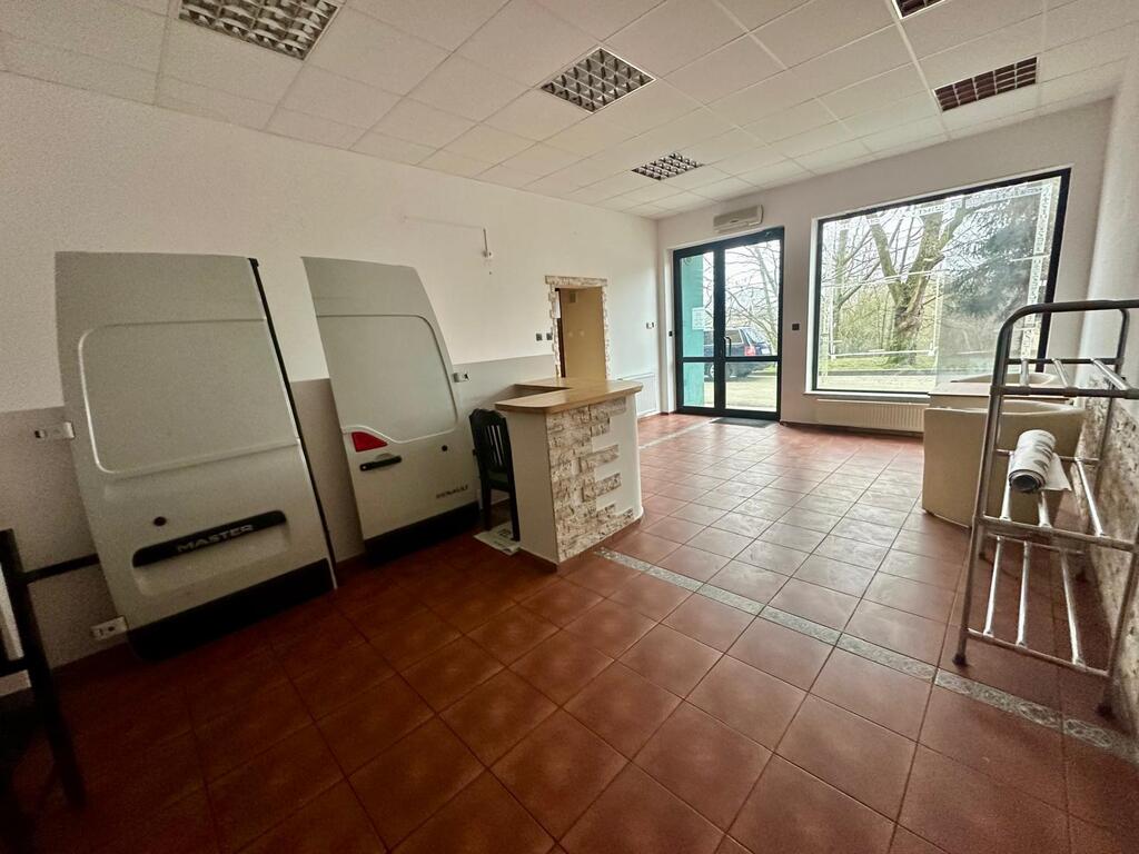 Lokal z dużą witryną oraz wejściem z ulicy położony jest na parterze w budynku z 2002 roku.