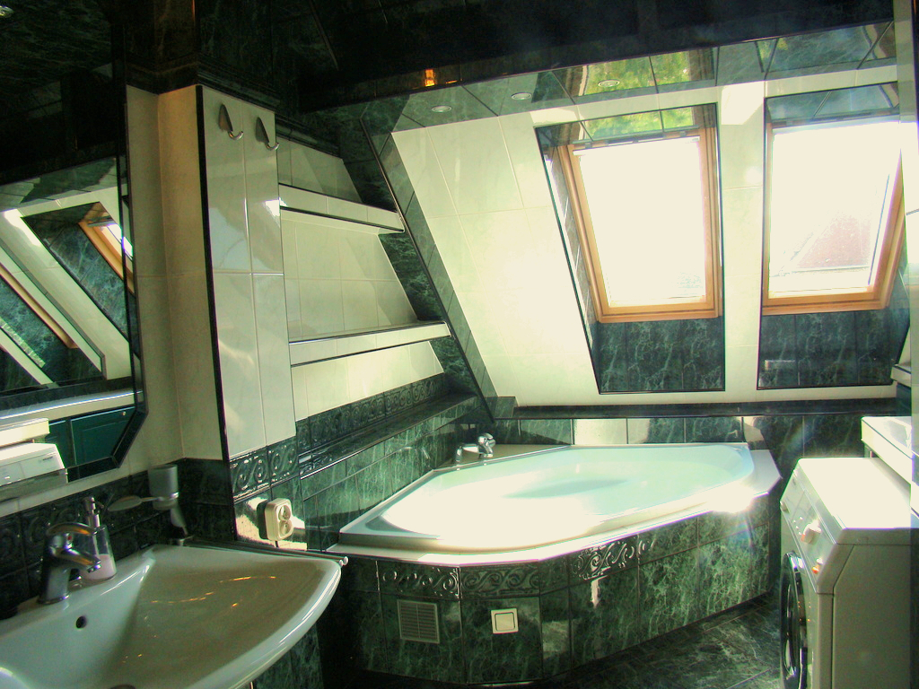 OPIS MIESZKANIA: I POZIOM: 2 pokoje dzienne, każdy z wyjściem na duży balkon. Z jednego wejście do trzeciego pokoju, z niego schody na II poziom. Na I poziomie również kuchnia z nowymi oknami połaciowymi oraz łazienka z oknami połaciowymii. W łazience o pow. ok. 9 m2 wanna narożna, kabina prysznicowa, umywalka, pralka, WC razem. W łazience glazura i terakota. W kuchni zabudowa meblowa lodówka z zamrażarką, zmywarka, płyta grzewcza, gazowa, piekarnik oddzielnie.