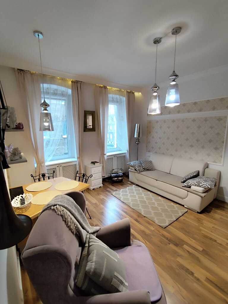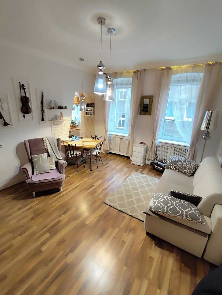 Mieszkanie w drugiej linii zabudowy ,częściowo umeblowane ,nie wymaga generalnego remontu.
