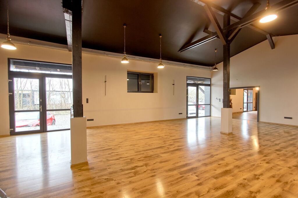 Całkowita powierzchnia to nieco ponad 193 m2. W lokalu znajdują sie dodatkowo pomieszczenia socjalne, WC. Wszystkie pomieszczenia z oknami. wysokość pomieszczeń to 3,5 m. Istnieje możliwość zmiany układu pomieszczeń lub podziału nieruchomości na 2 lub 3 osobne lokale.