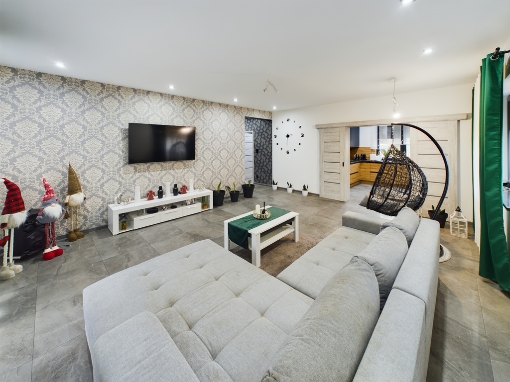 - Salon z wyjściem na zadaszony taras
