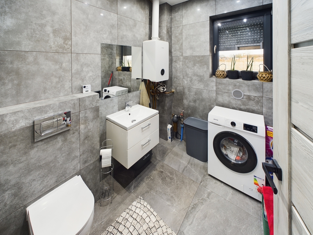 Dom posiada ogrzewanie gazowe z pieca kondensacyjnego, ujęcie wody z sieci miejskiej. W każdym pomieszczeniu ogrzewanie podłogowe.