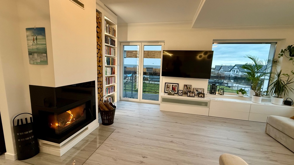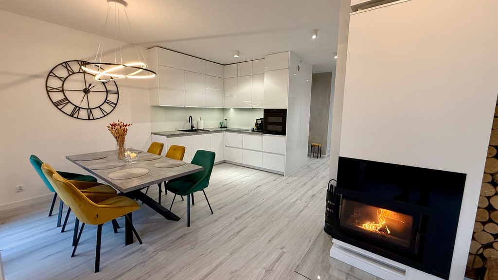 Wszystkie stałe zabudowy jak kuchnia szafy oraz kominek oczywiście pozostają.