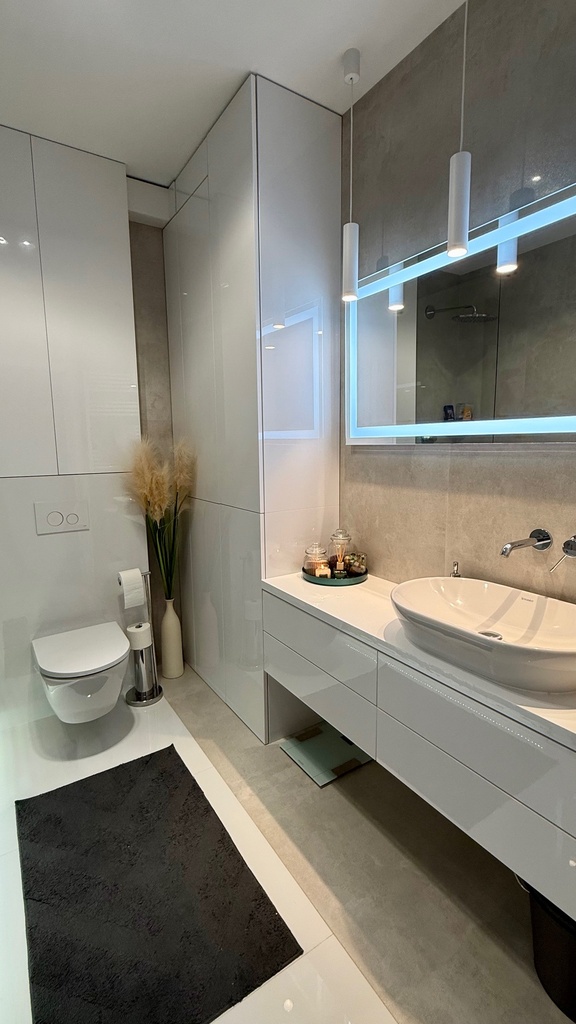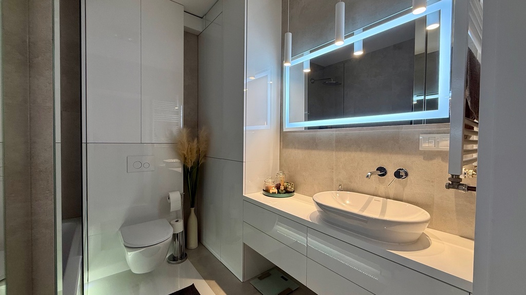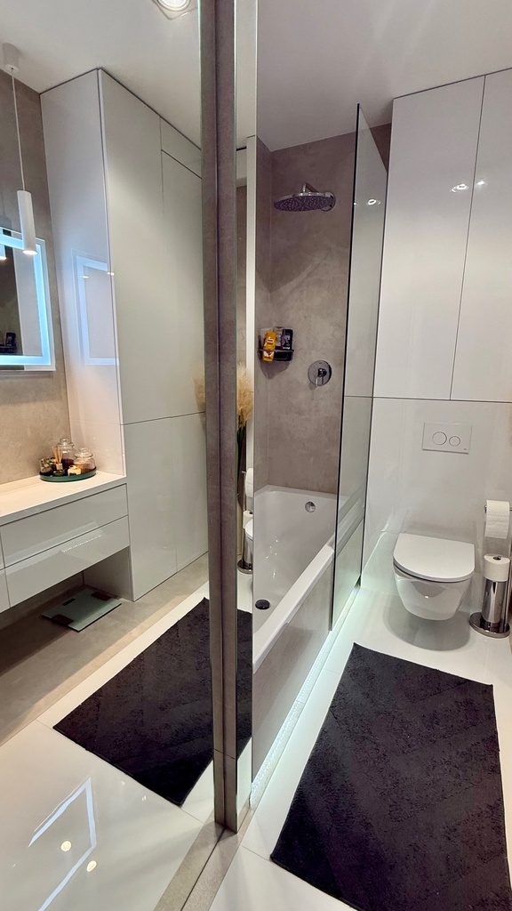 Łazienka razem z wc 5,60m2 - wanna z funkcją prysznica. Holl przestronny z dużą szafa zabudowana na wymiar.
