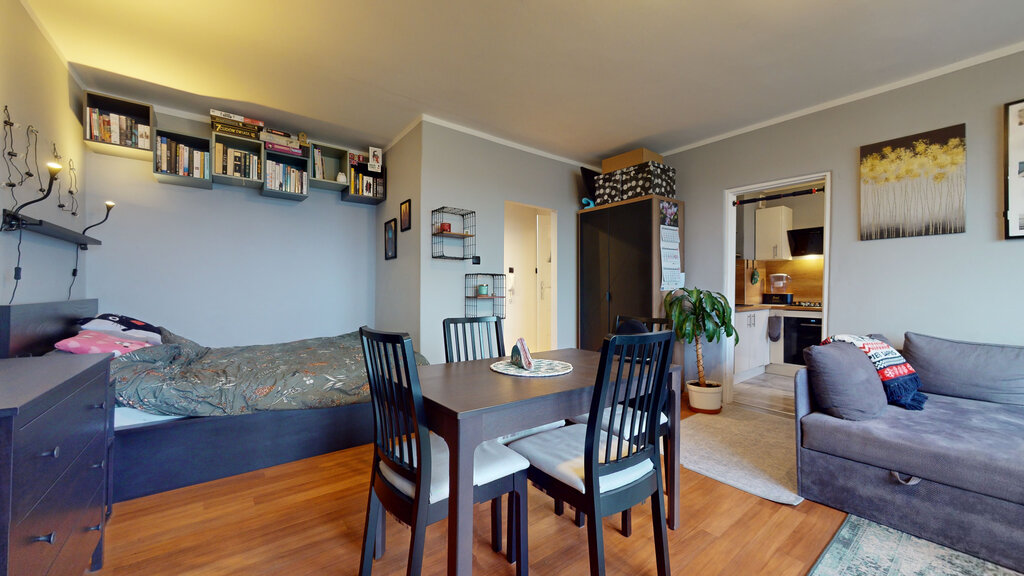 - duży salon z wydzieloną sypialnią