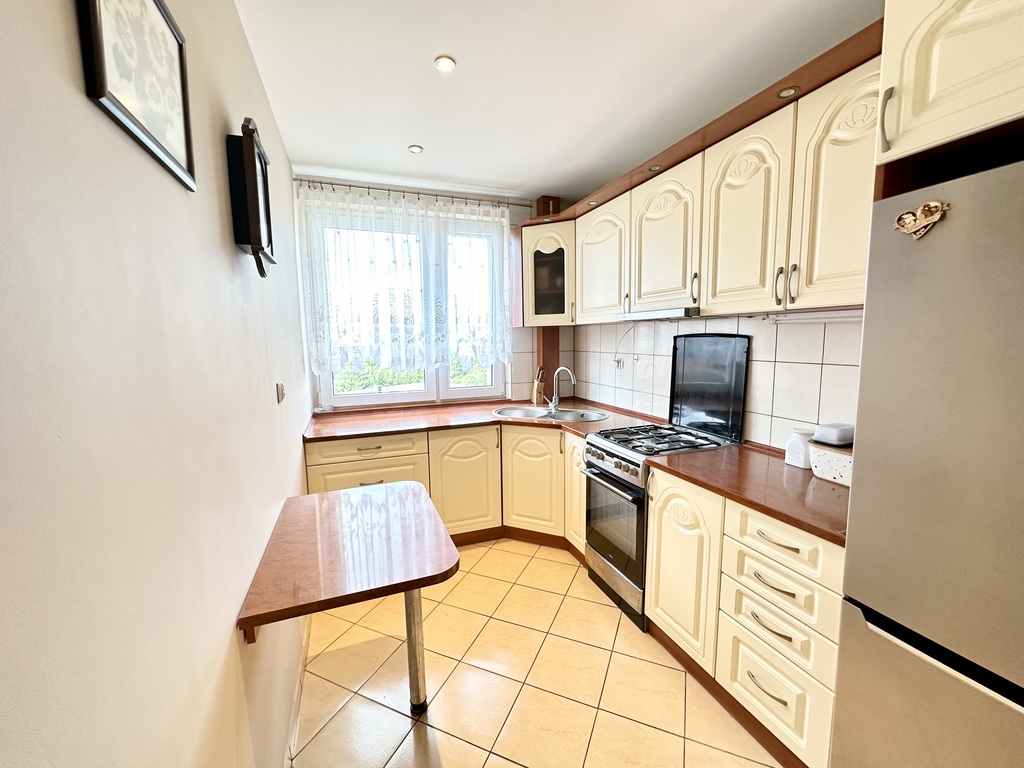 Oferujemy na sprzedaż dwupokojowe mieszkanie z dużym zabudowanym balkonem, usytuowane na III piętrze niskiego bloku na osiedlu Bukowym.