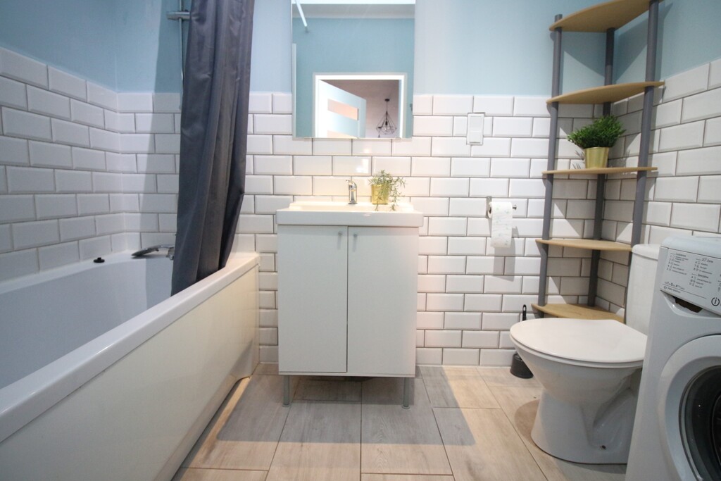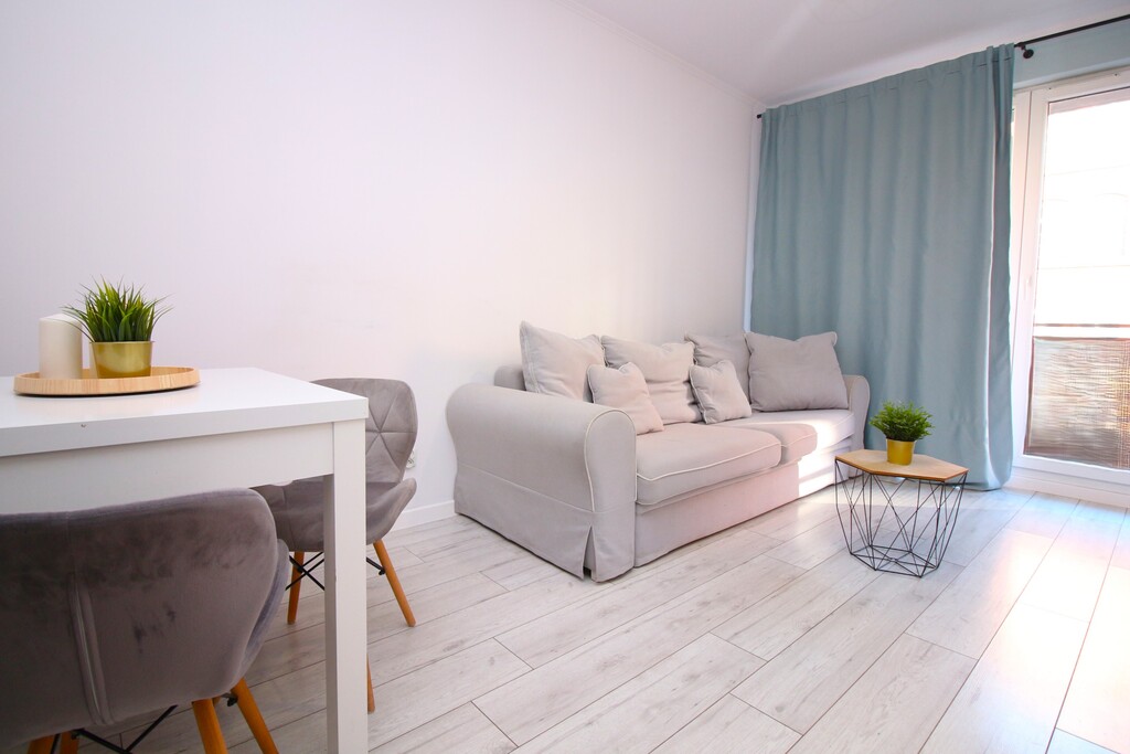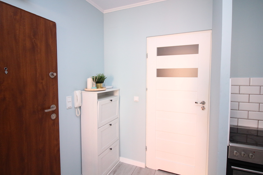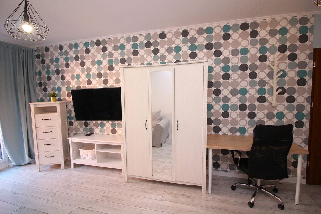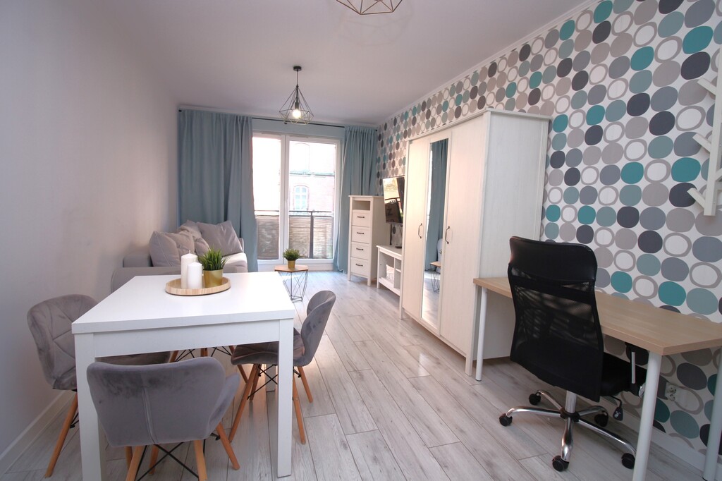 • salon z wyjściem na balkon, aneks kuchennym, przestronna łazienka.