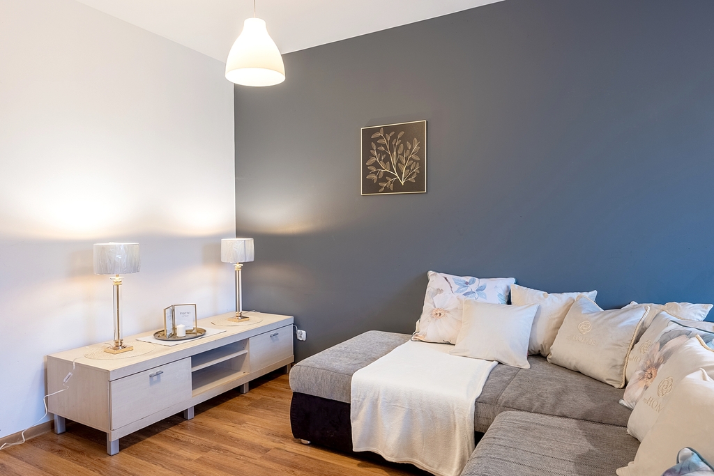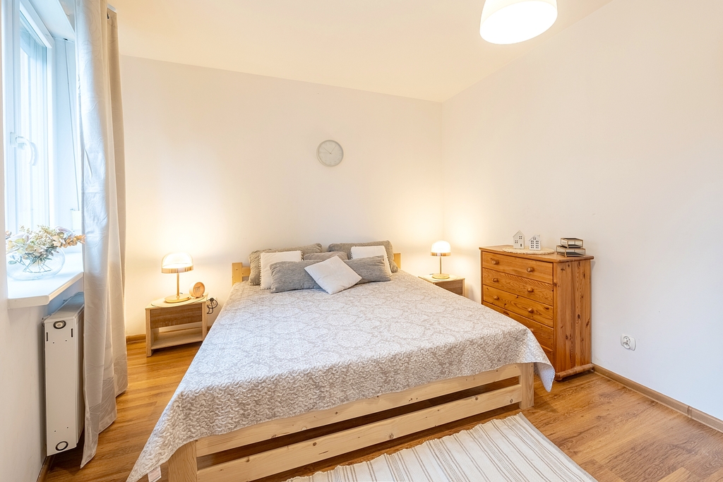 Starannie wykończone mieszkanie dwupokojowe o łącznej powierzchni 55,60 m2 z ogródkiem na ogrodzonym, monitorowanym osiedlu - w Bezrzeczu. Dostęp do osiedla tylko poprzez wjazdy z automatycznymi bramami. Pomiędzy budynkami oddalonymi od ulicznego zgiełku dużo miejsc parkingowych. Mieszkanie wyróżnia się funkcjonalnym układem oraz kameralnym ogródkiem, który zapewnia prywatność.