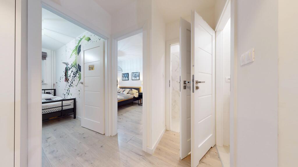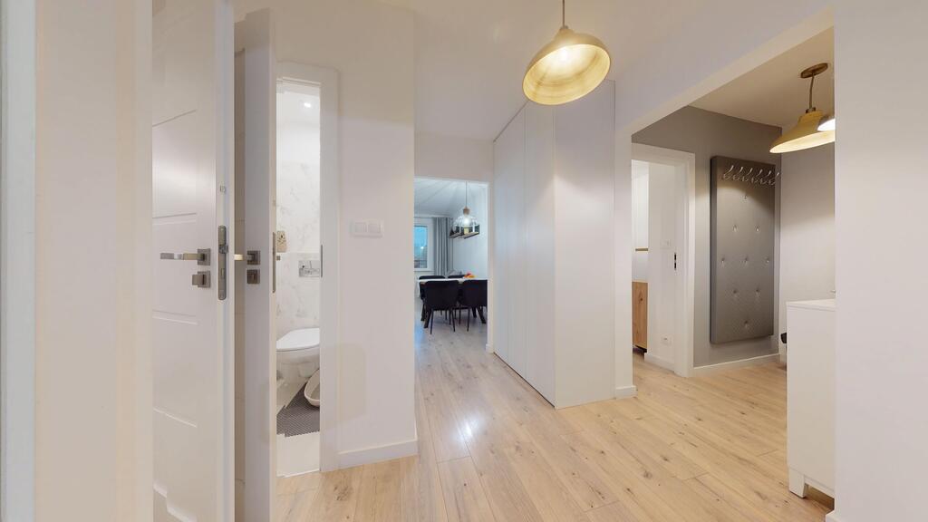 - przedpokój z dwiema dużymi szafami w zabudowie.