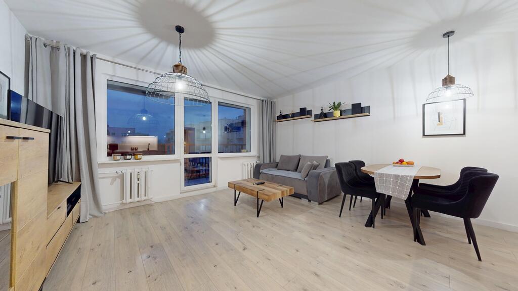 Ogrzewanie i ciepła woda z sieci mejskiej. Czynsz z zaliczkami wynosi 895 zł przy 3 osobach.