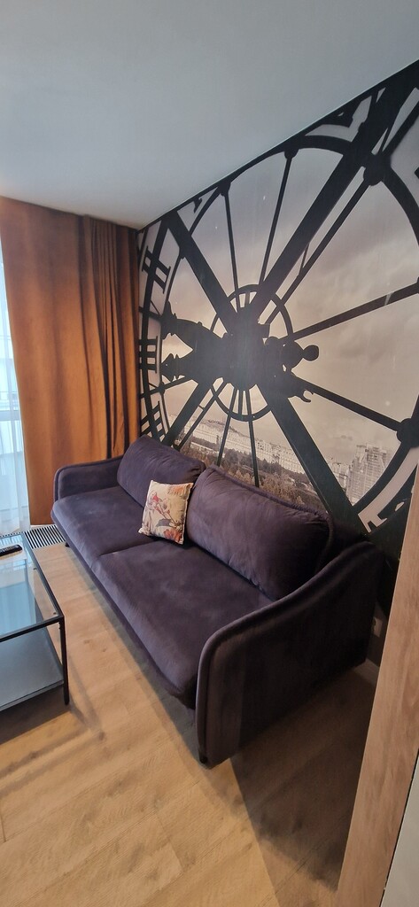 Nowocześnie urządzone,  starannie wykończone mieszkanie z aneksem kuchennym, wydzielonym miejscem sypialnianym.