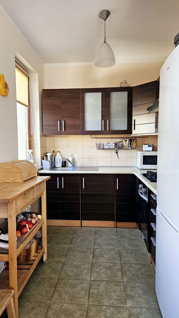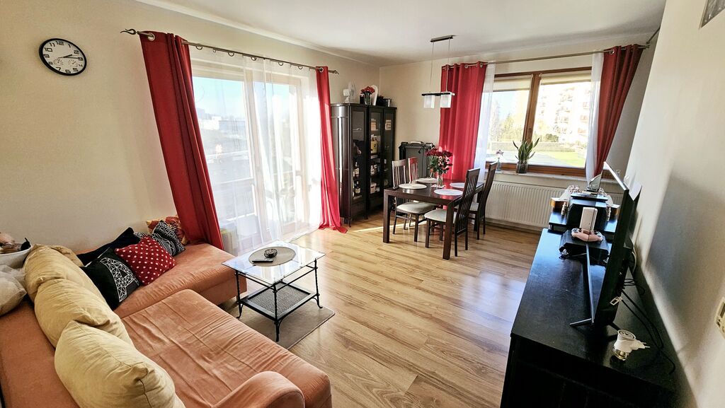 Przedmiotem oferty jest mieszkanie 2 pokojowe, położone na I piętrze w budynku z cegły z 2009 r. na ul. Turkusowej. Mieszkanie całkowicie umeblowane i wyposażone. W salonie kanapa, stół z krzesłami, ława; aneks kuchenny w zabudowie, ze sprzętem AGD (lodówka, kuchenka gazowa, zmywarka). Sypialnia z podwójnym łóżkiem, szafa. W łazience wanna, pralka, wc. Opłaty miesięczne to czynsz 319 zł, woda i ogrzewanie gazowe, prąd. Przy podpisaniu umowy wymagany najem okazjonalny (koszt notariusza po stronie właścicieli mieszkania) oraz jednorazowa opłata do biura nieruchomości. Kaucja 3.000 zł. Doskonała lokalizacja dla osób z dziećmi, par. Blisko przystanki autobusowe, pętla tramwajowa, sklepy, szkoła. Mieszkanie dostępne od 1 marca 2025 r.
