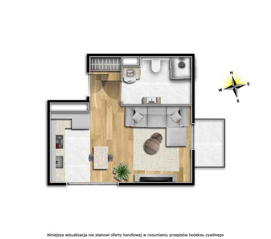 Ofertę stanowi lokal apartamentowy (w stawce 23%), o powierzchni 26,06 m2, usytuowany w parterze, składający się z salonu z aneksem kuchennym i łazienki, balkon 1,79 m2.