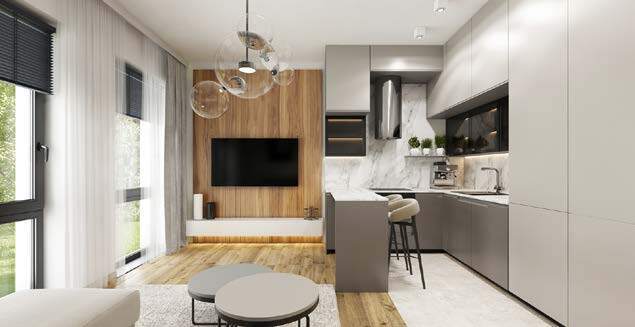 Apartamenty zostały tak zaprojektowane, by niezależnie od wielkości i pomysłów na ich aranżację, gwarantowały komfort i niezależność. Wszystkie z aneksem kuchennym – w wersji jednopokojowej z przestronnym salonem, w wersji dwupokojowej z osobną, wygodną sypialnią. Do tego klimatyzacja, duże okna a w niektórych balkon.