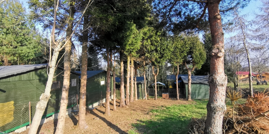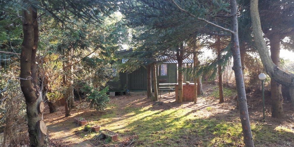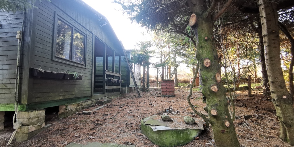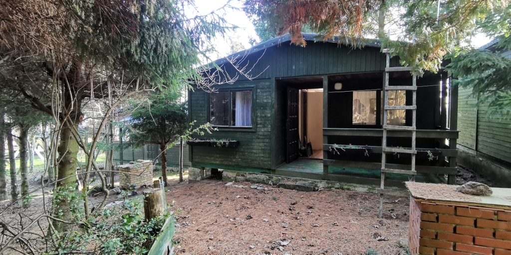 Miejsce zostało zagospodarowane ok. 30 lat temu - aktualna zagospodarowanie nieruchomości - 10 domków drewnianych, w stanie od dobrego po stan do odświeżenia (posadowionych zgodnie z decyzją o pozwoleniu na użytkowanie) oraz piękna zieleń i drzewa, które latem dają schronienie przed słońcem i stanowią element oddzielający domki , zapewniając gościom sporą prywatność. Przed każdym z domków zewnętrzny grill do wyłącznego używania. Na terenie znajduje się też miejsce do parkowania, mały plac zabaw, piaskownica.
