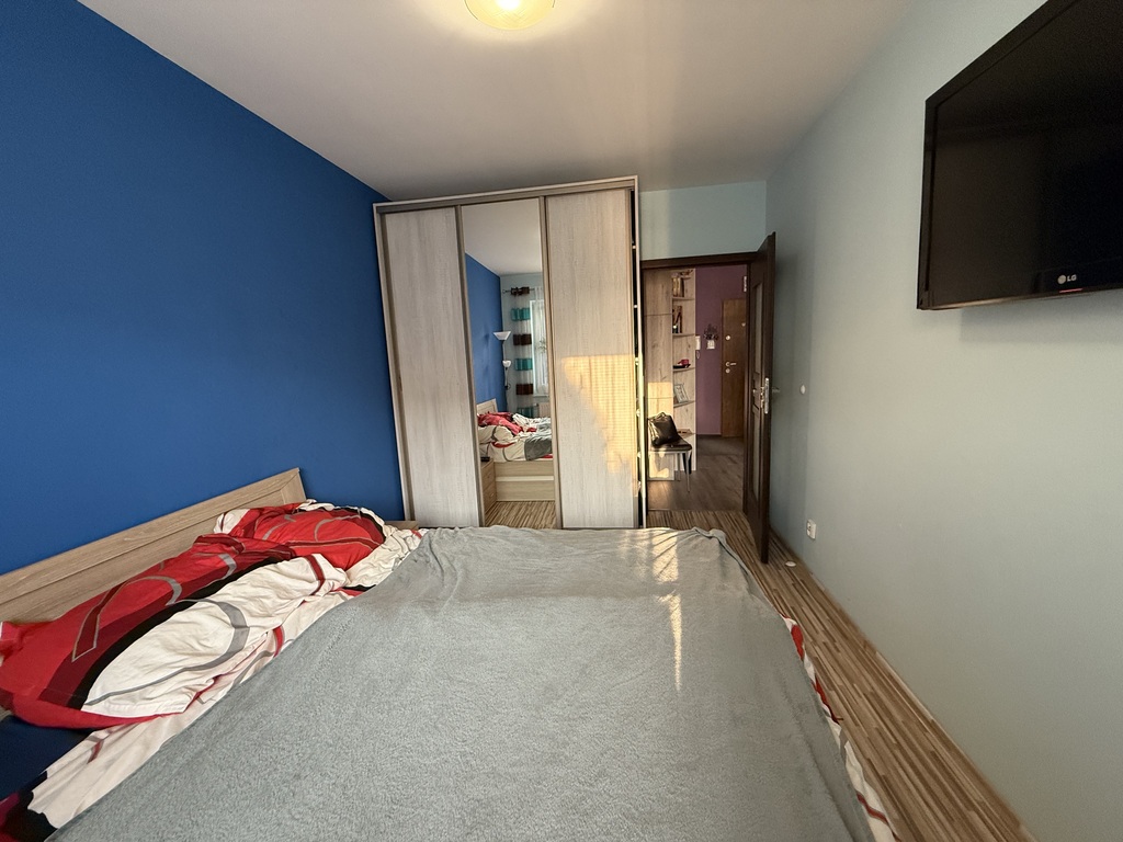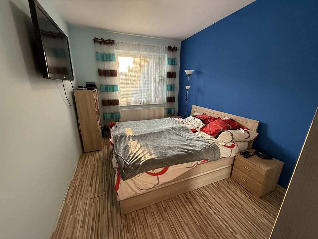 Ściany w całym mieszkaniu gładzone pomalowane, panele wysokiej jakości, nowoczesne oświetlenie, łazienka w glazurze i terakocie z wanną, w przedpokoju i sypialni duże i pojemne szafy - typu komandor.