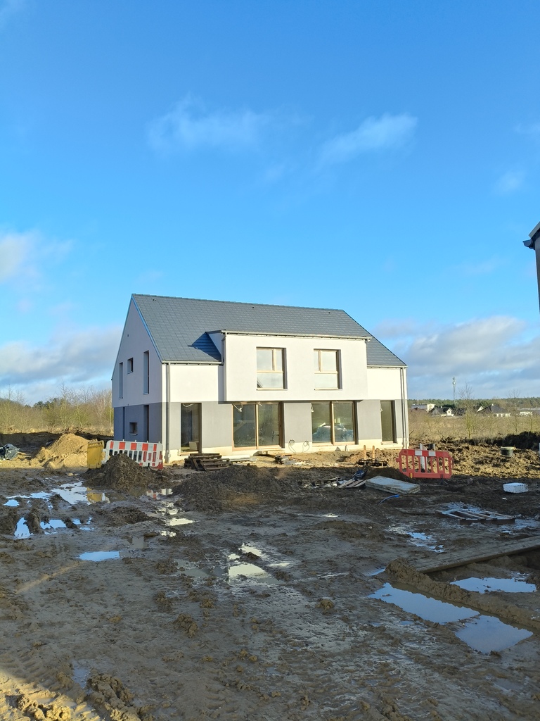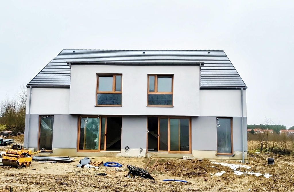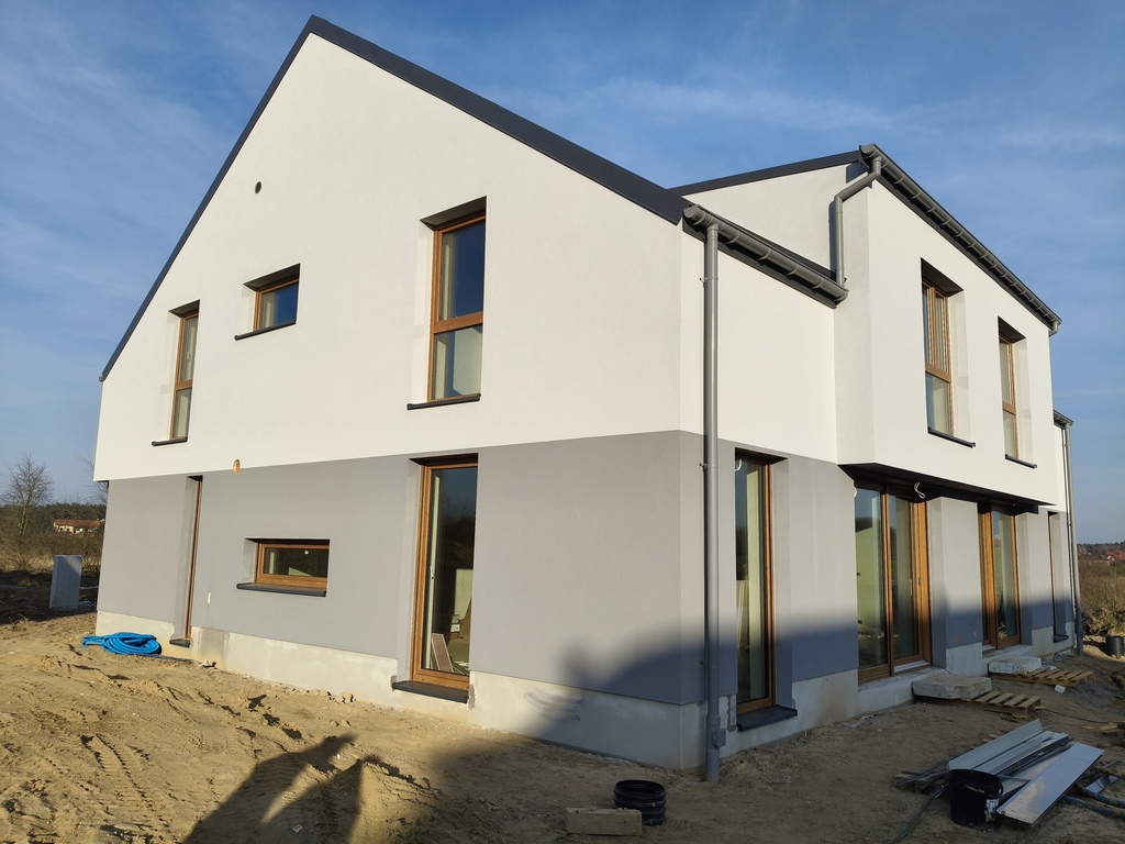 Budynek oddzielony jest od drugiego ścianą i warstwą izolacji. Drzwi zewnętrzne do budynku antywłamaniowe. Zakończenie stanu deweloperskiego przewidziane na lato 2025. Działka ogrodzona siatką z trzech stron.