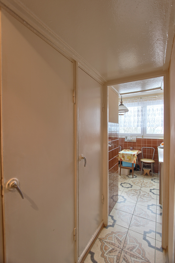 Mieszkanie ma powierzchnię nieco ponad 65 m2 i składa się z trzech pokoi (jeden przechodni), kuchni, łazienki i wc. Do mieszkania przynależy dwumetrowa piwnica.