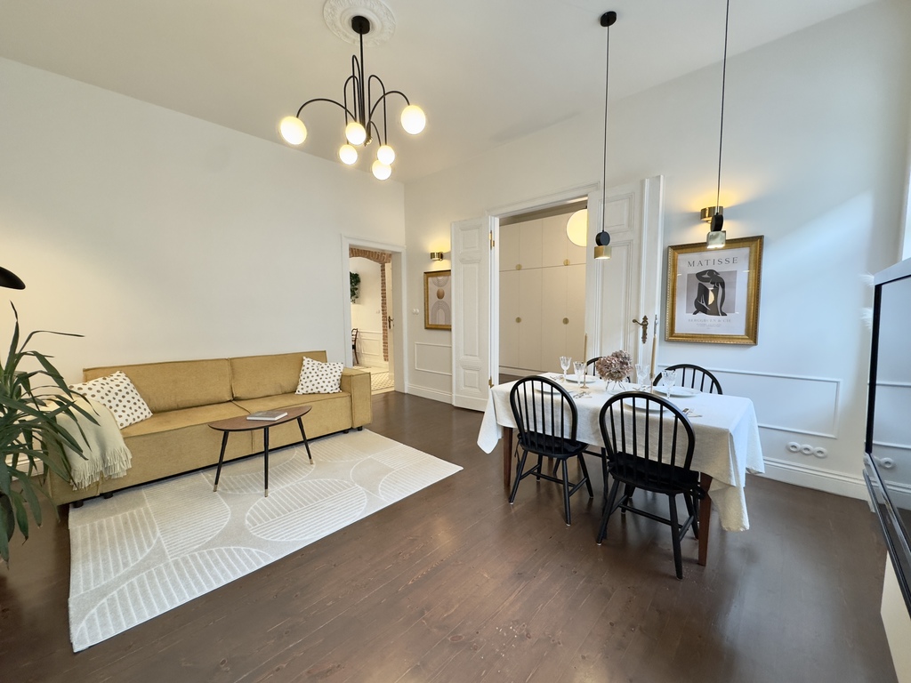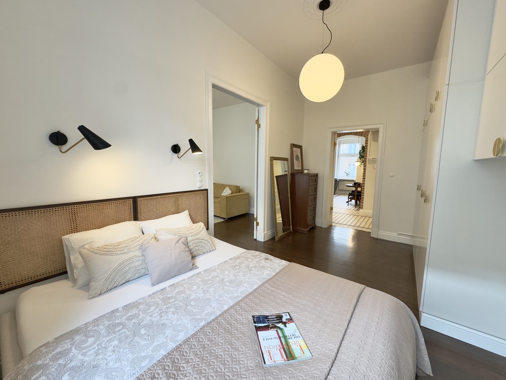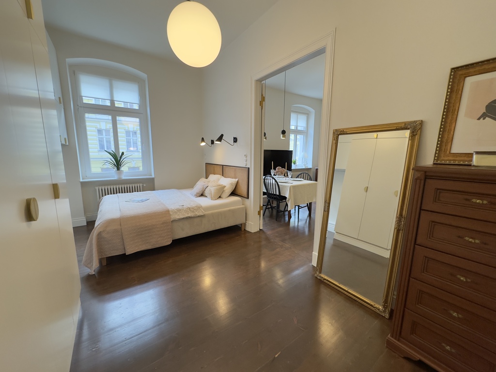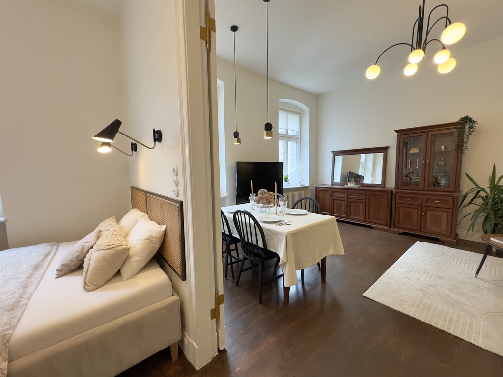 Na sprzedaż oferujemy wyjątkowe mieszkanie o powierzchni prawie 85 m², usytuowane na pierwszym piętrze odnowionej kamienicy, wykończone z dbałością o detale i z zachowaniem oryginalnej stolarki. Lokal został urządzony zgodnie z unikalną aranżacją projektanta wnętrz, co nadaje mu niepowtarzalny klimat i charakter.
