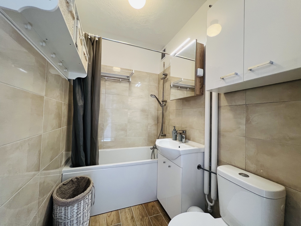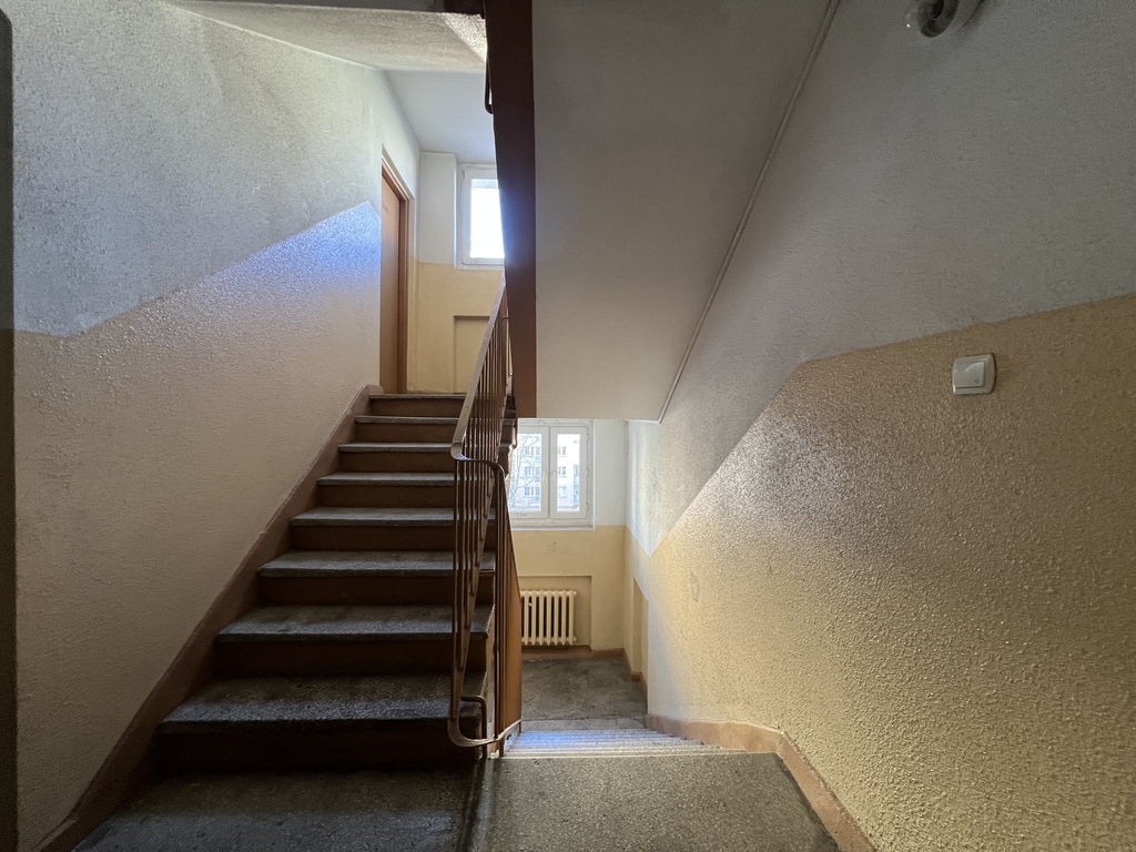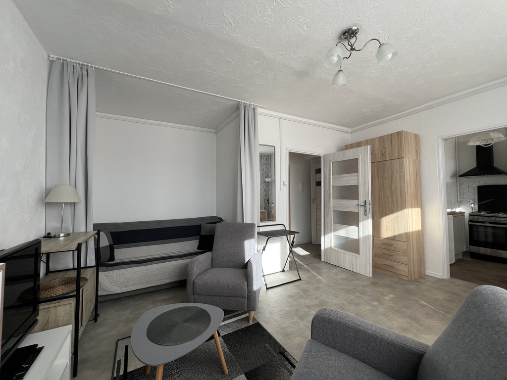 Kawalerka o powierzchni 30,94 m2, składa się ze słonecznego pokoju dziennego z balkonem francuskim, kuchni, przedpokoju z dużą szafą oraz łazienki z wanną i WC.