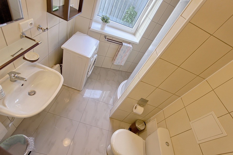 Wysokiej jakości wykończenie: ściany gładzone i malowane, kafle na podłogach – łatwe do utrzymania w czystości