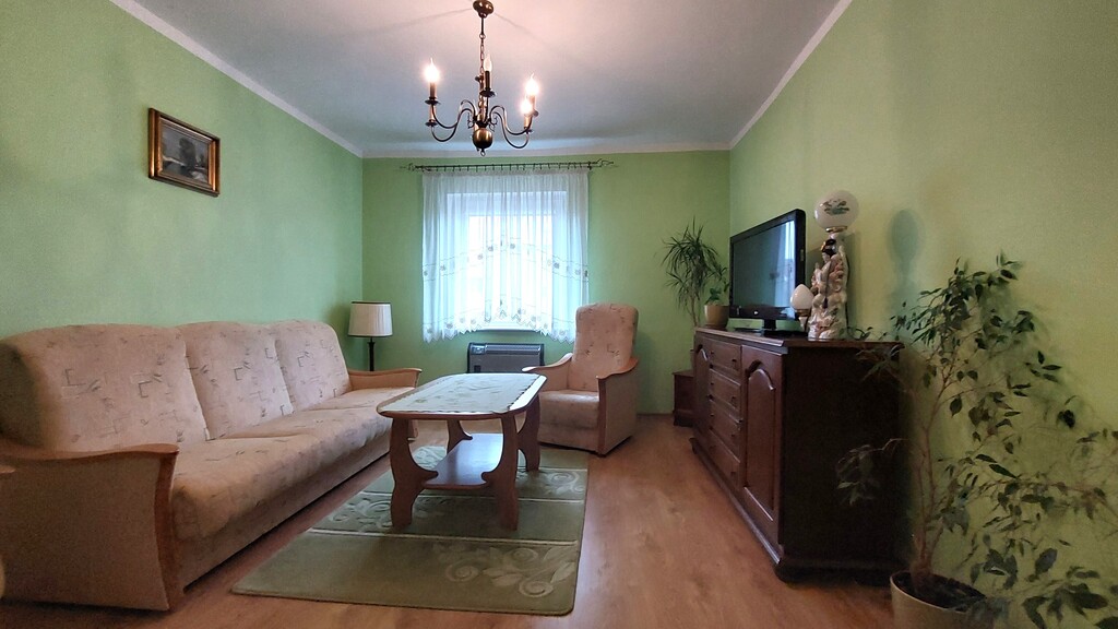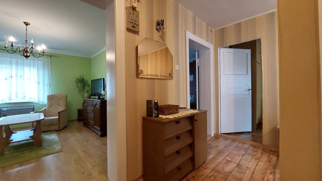 Okna wymienione PCV, ściany malowane i tapetowane. Na podłogach w pokojach i korytarzu linoleum, łazienka w glazurze i terakocie. Widna kuchnia w zabudowie.