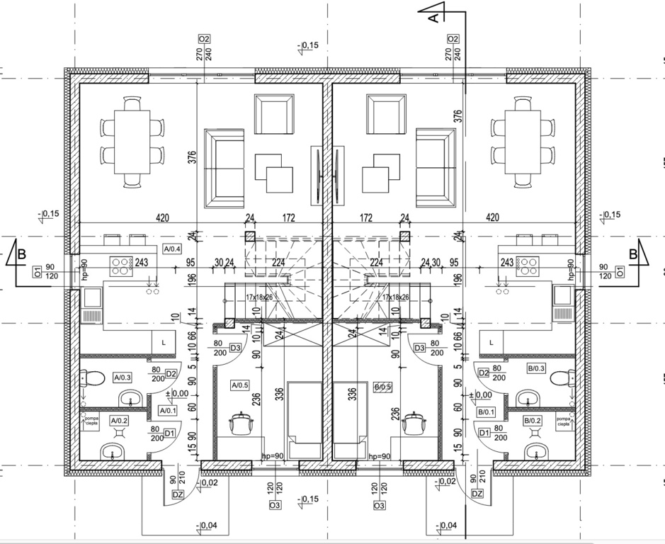 Ofertą sprzedaży jest połowa domu w zabudowie bliźniaczej o pow. całkowitej 106,74 m2 zaś użytkowej 100 m2 wraz z przynależną działką o pow. 505 m2.