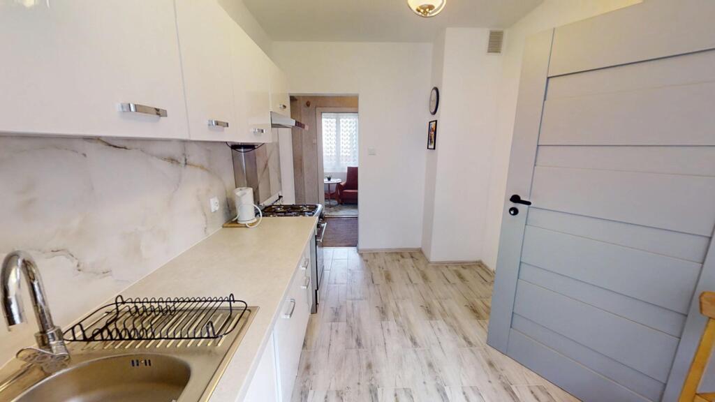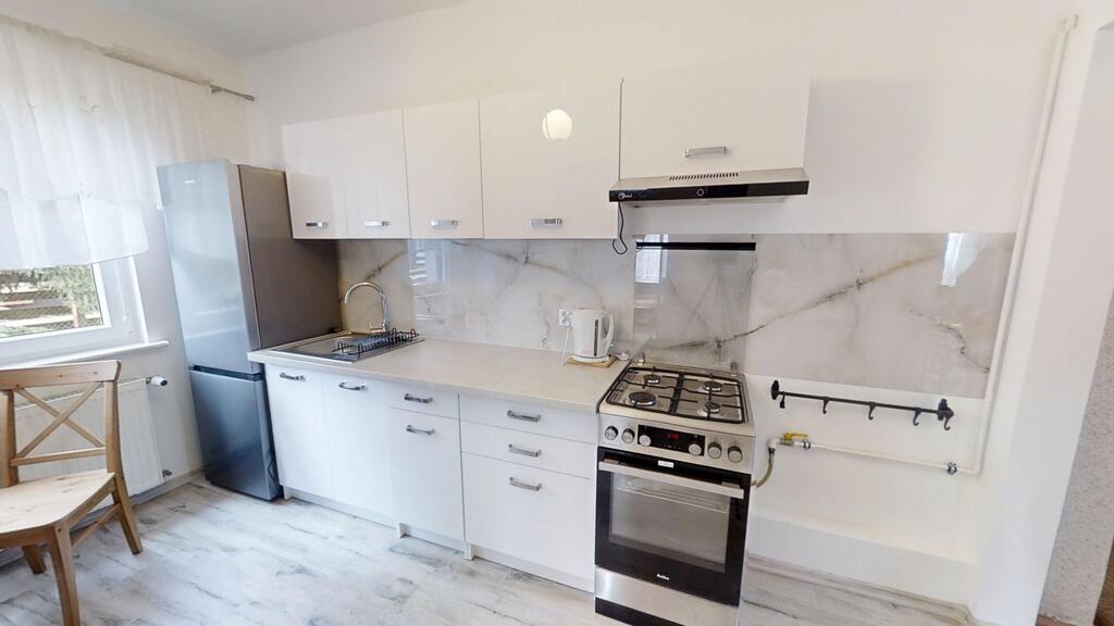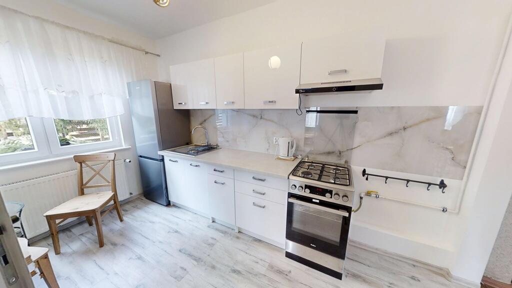 Na powierzchnię 80 m2 składają się : 2 sypialnie, duży pokój, wyremontowana kuchnia i bardzo duża łazienka, weranda.