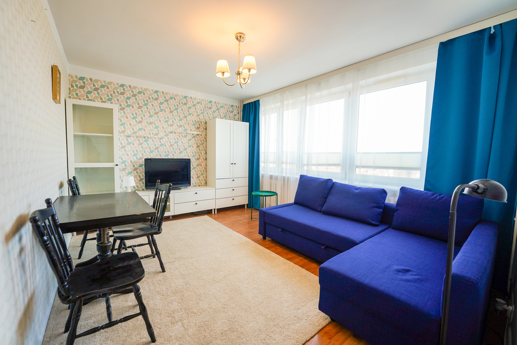 Na wynajem komfortowe mieszkanie przy ul. Witkiewicza, mieszczące się na 9 piętrze wieżowca z lat 70-tych.