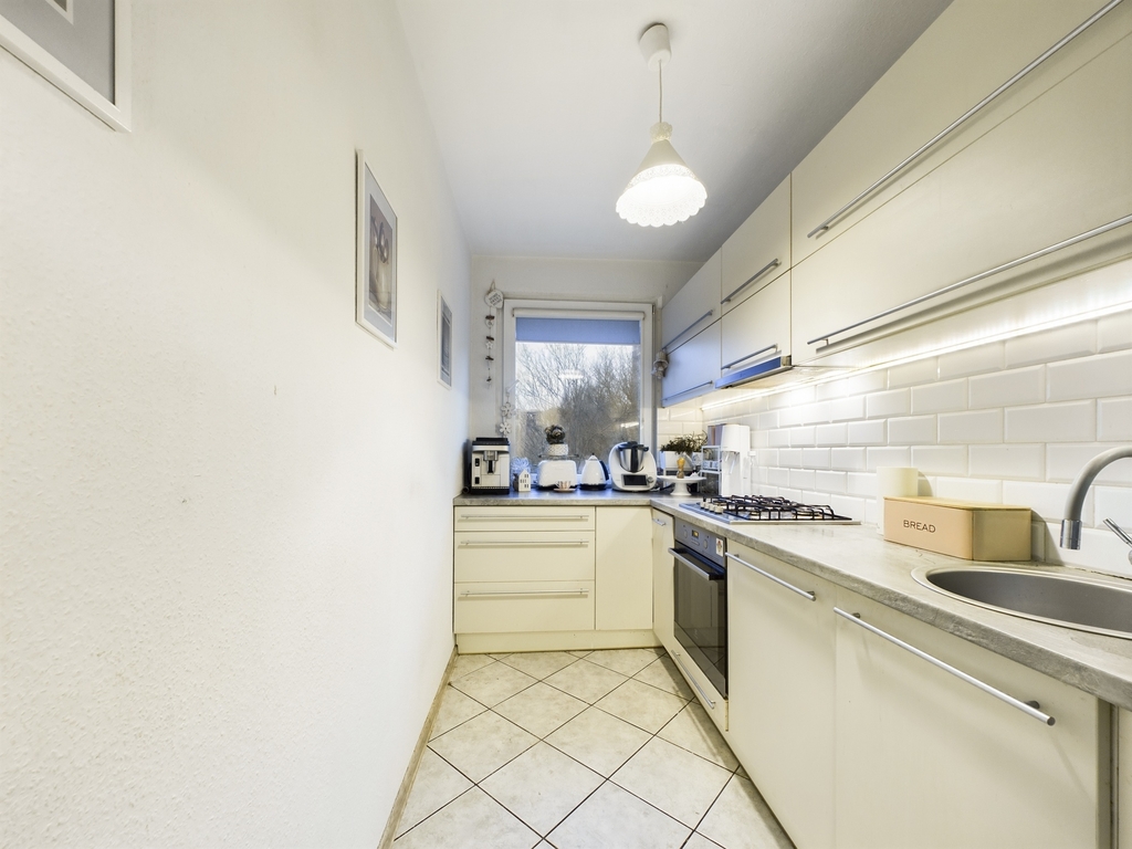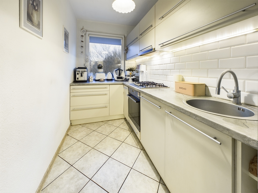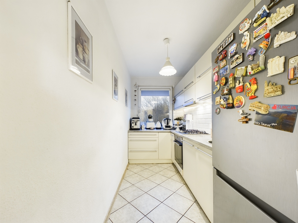 Nowoczesna i jasna, wykończona w wysokim standardzie. Meble w zabudowie oferują dużo miejsca do przechowywania, a pełne wyposażenie w sprzęt AGD (piekarnik, płyta gazowa, zmywarka, okap) zapewnia komfort codziennego użytkowania. Duże okno dostarcza sporo naturalnego światła i widok na okoliczną zieleń.