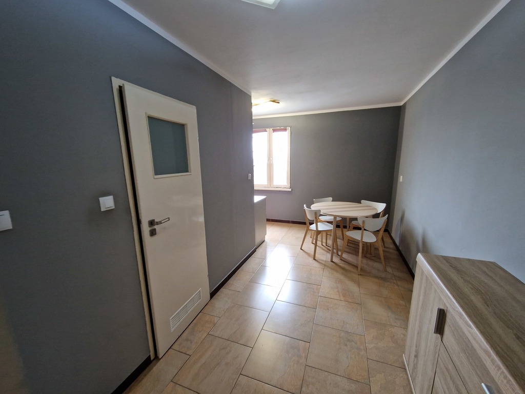 Mieszkanie umeblowane jak na zdjęciach. Pokój dzienny około 17m2 z kratką balkonową, na podłodze panele. Kuchnia umeblowana i wyposażona (piekarnik, lodówka - nowa). Układ mieszkania pozwolił wygospodarowania niewielkiej jadalni przy kuchni. Łazienka duża, z wanną, wc i umywalką. Na korytarzu zabudowana szafa która pomieści sporo rzeczy. Na korytarzu i w kuchni płytki. Dodatkowo do mieszkania przynależy piwnica ok 3m2.