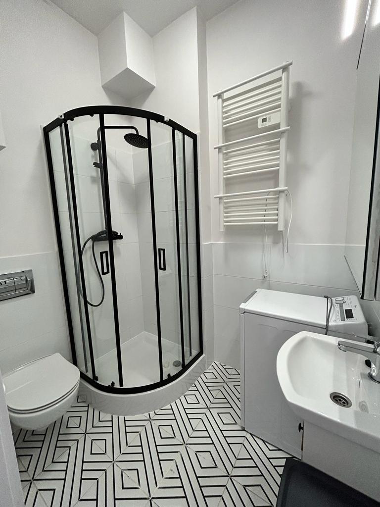 Lokal umeblowany i wyposażony. Łazienka w nowoczesnej kolorystyce z pralką.