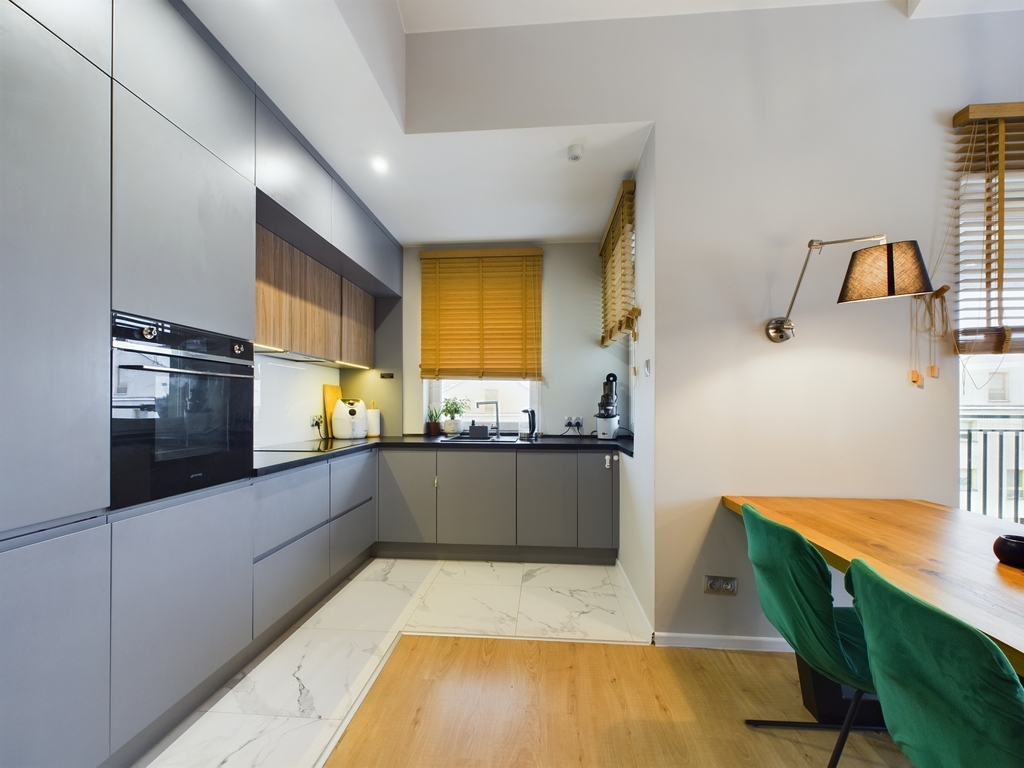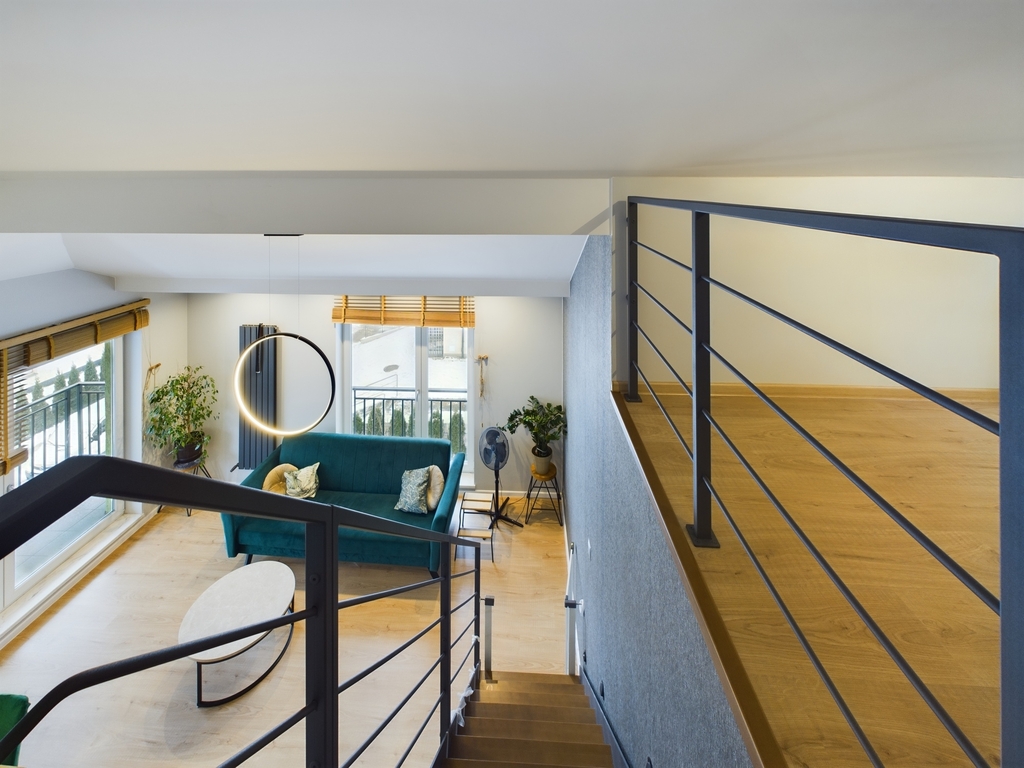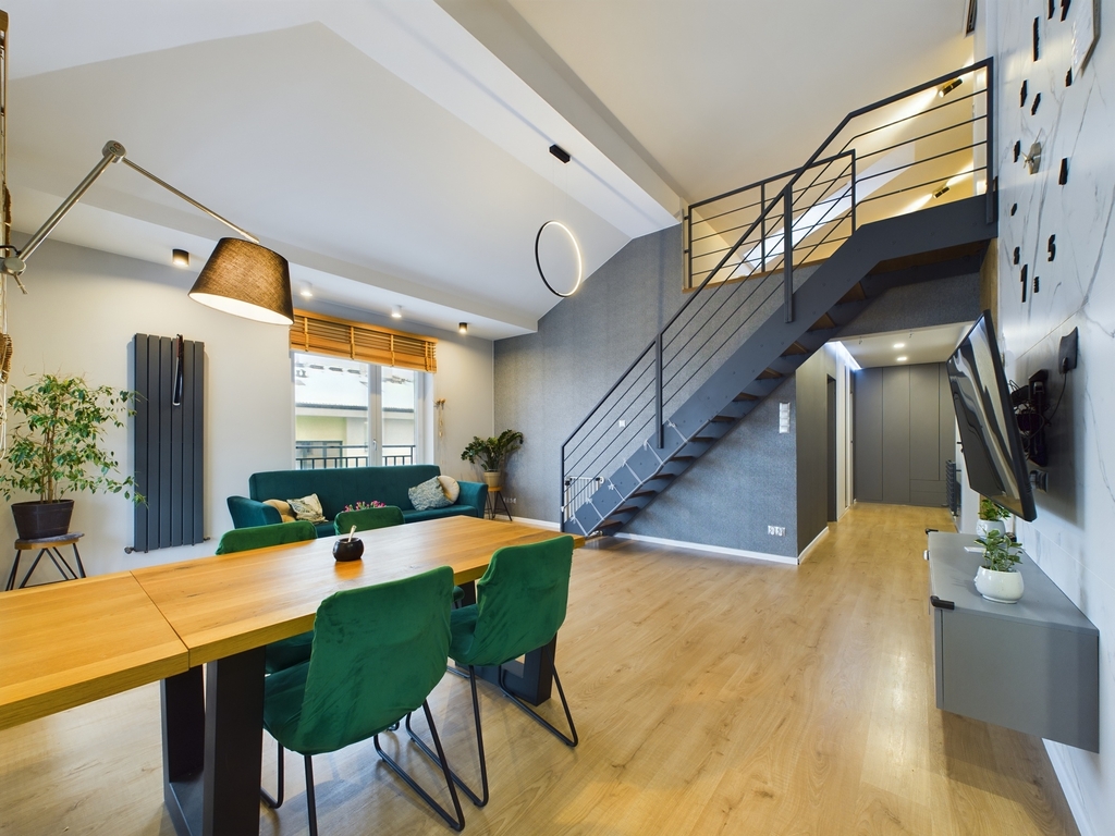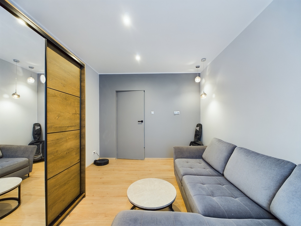 - Przestronny salon z aneksem kuchennym oraz wyjściem na balkon,
