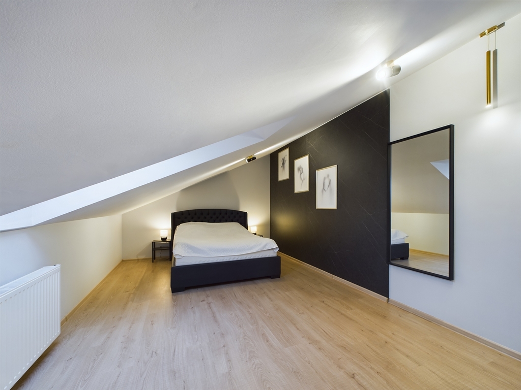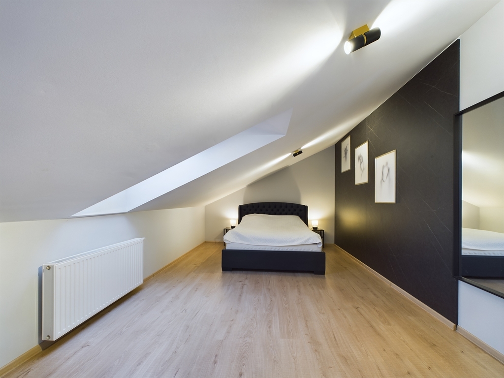- Intymna sypialnia zapewniająca komfort wypoczynku