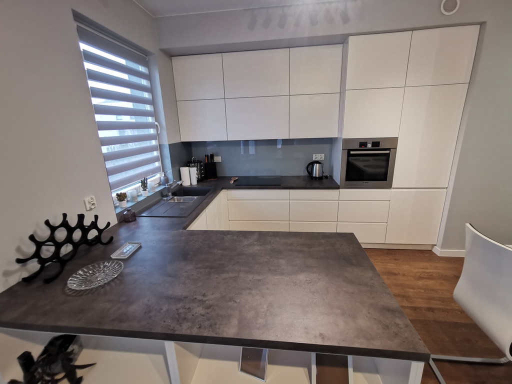 ANEKS KUCHENNY: zmywarka, płyta, okap, lodówka, piekarnik, zlewozmywak. (rzeczy codziennego użytku np. sztućce również są na wyposażeniu mieszkania)