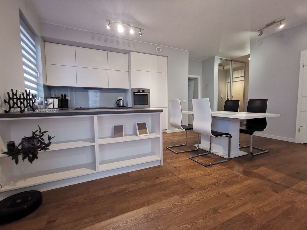 W mieszkaniu udogodnienia takie jak suszarka na pranie czy robot automatyczny.