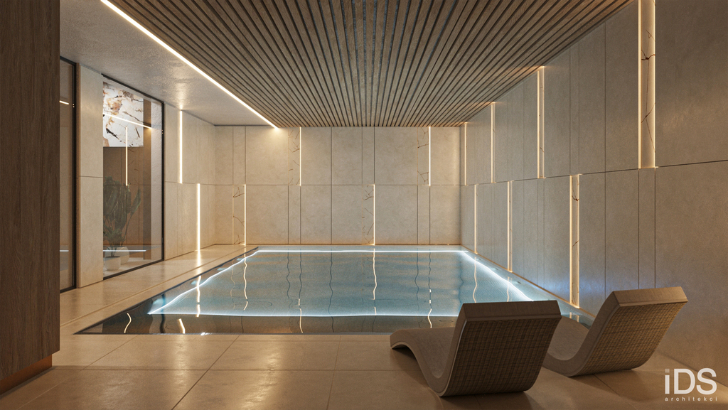 Do dyspozycji mieszkańców oferujemy także podziemny prywatny basen ze strefą SPA.
