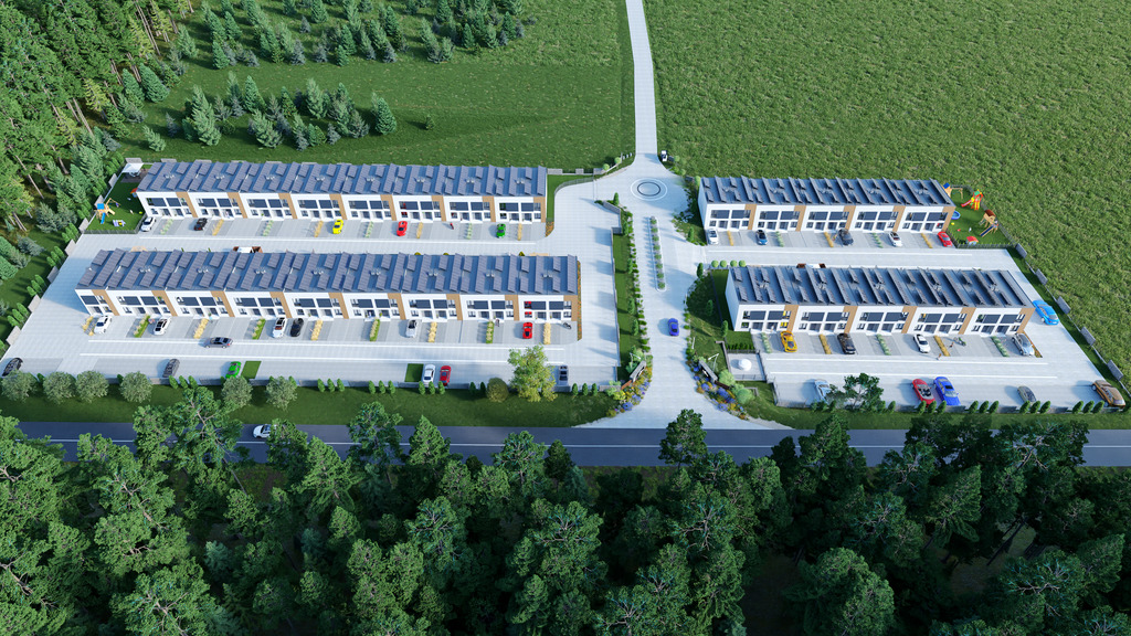 Projekt osiedla zakłada 33 domy szeregowe przy ul. Willowej w miejscowości Charzyno, w województwie zachodniopomorskim.