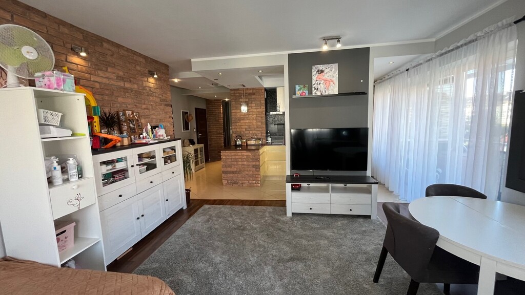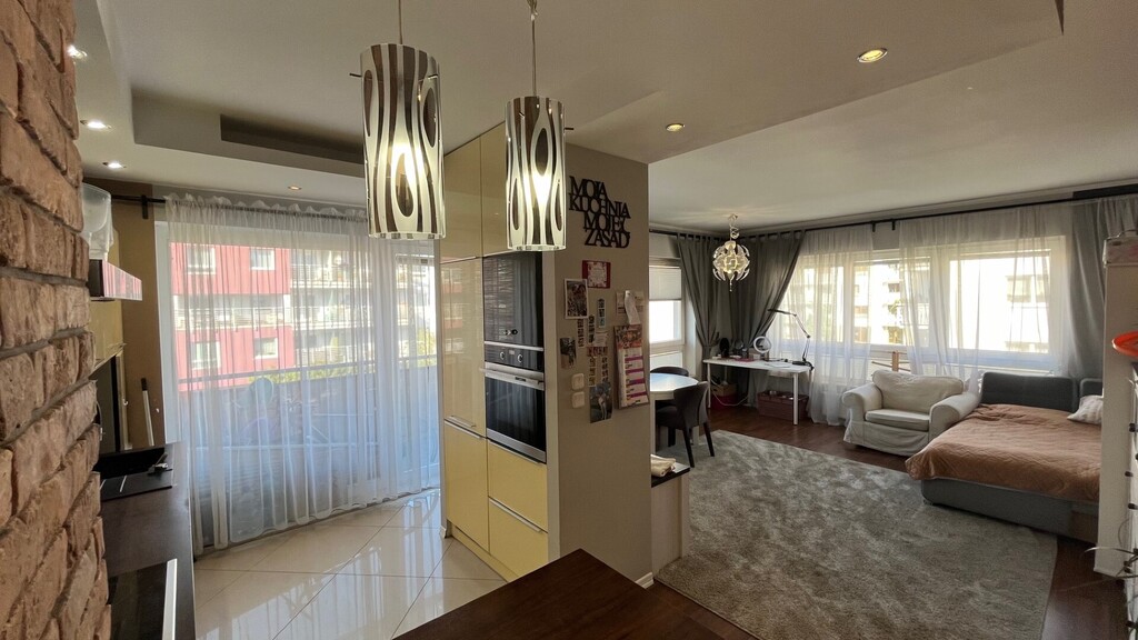 - duży salon połączony z kuchnią i wyjściem na ładny balkon