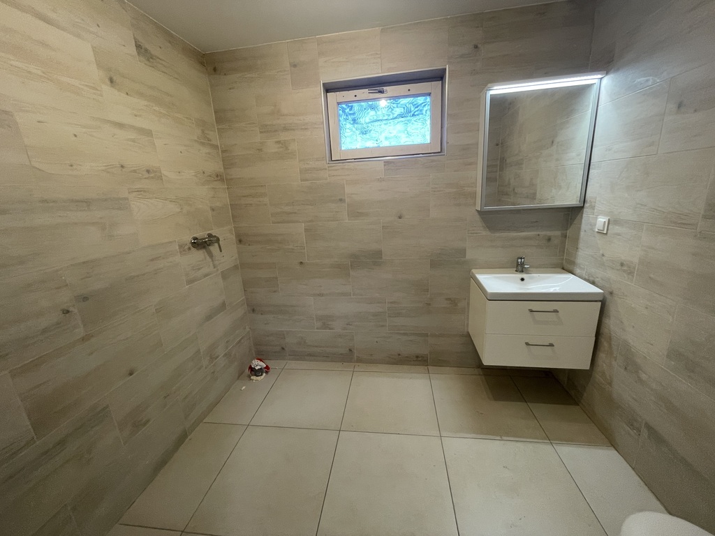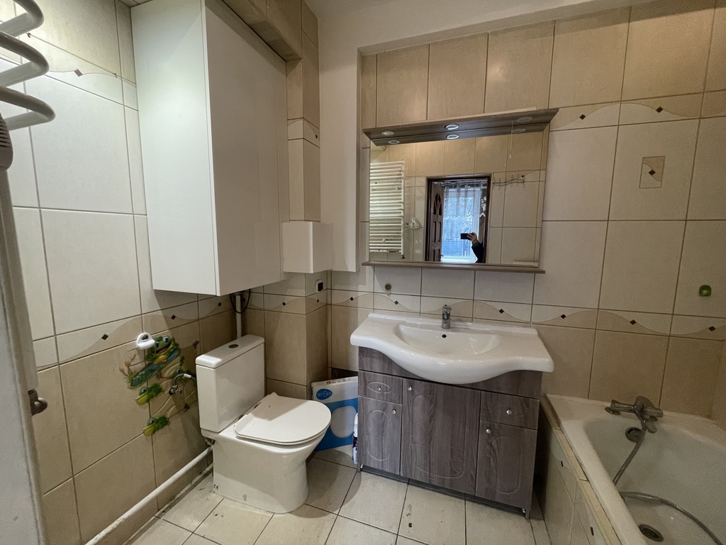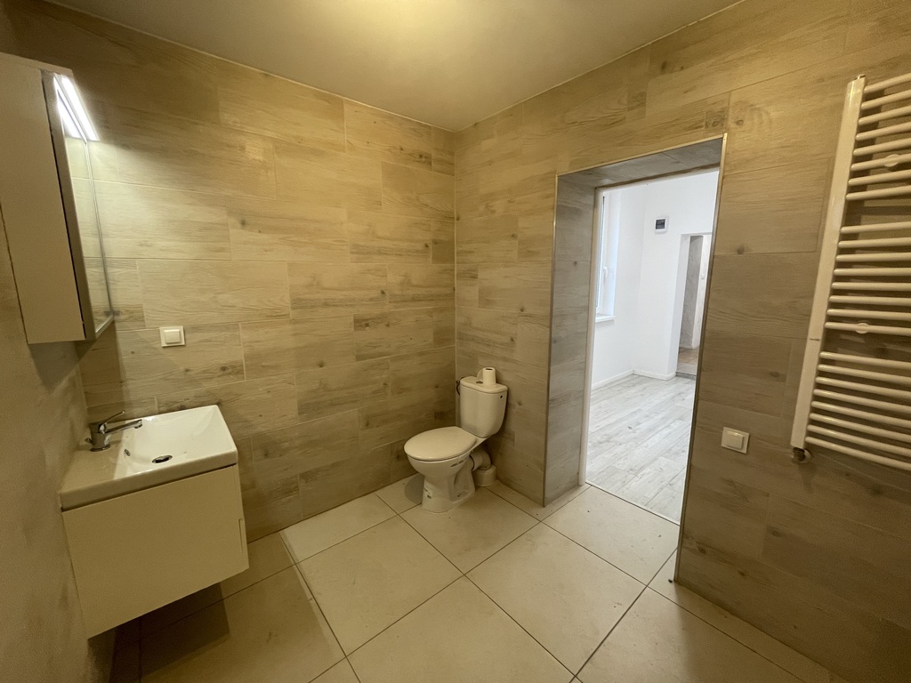 Ściany wygładzone białe, na podłogach panele, jedna z łazienek całkowicie wyremontowana, do skończenia pozostało wstawienie kabiny prysznicowej, druga łazienka miała remont 8 lat temu.