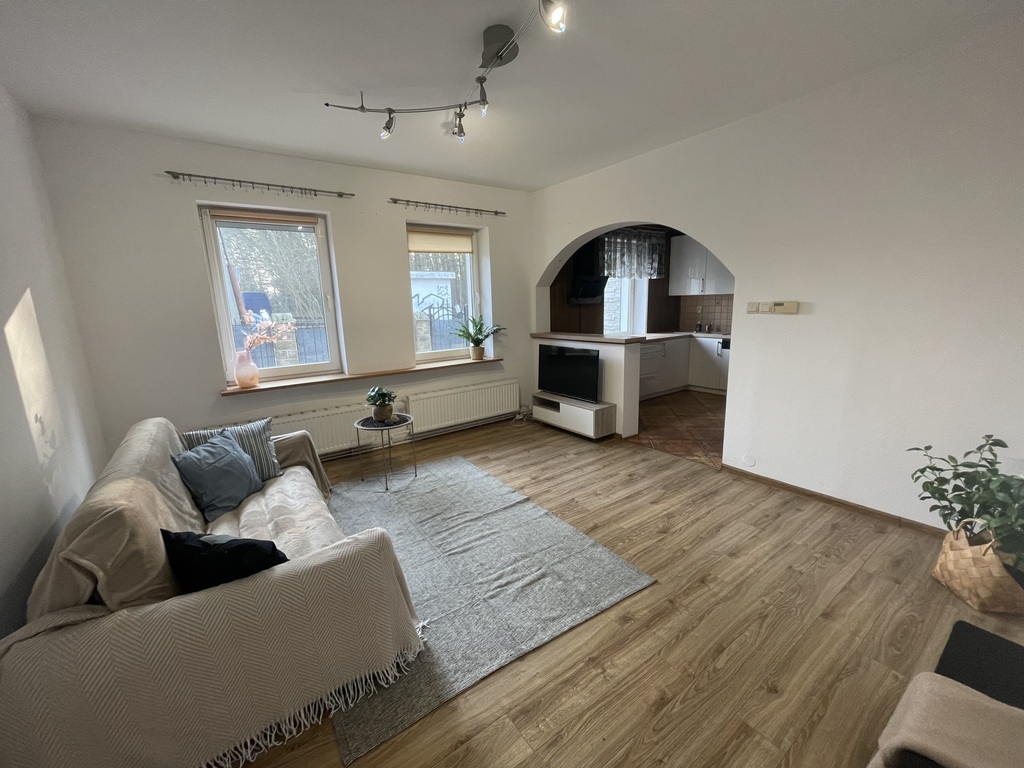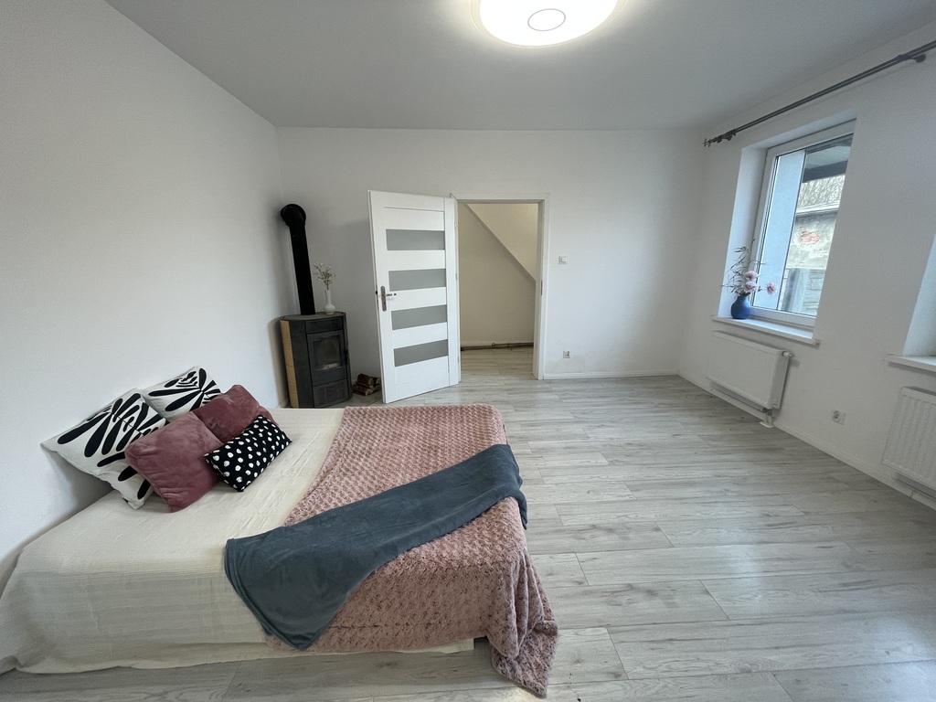 Mieszkanie znajduje się w budynku dwurodzinnym z zaadoptowanym poddaszem, na którym jest trzecie mieszkanie.