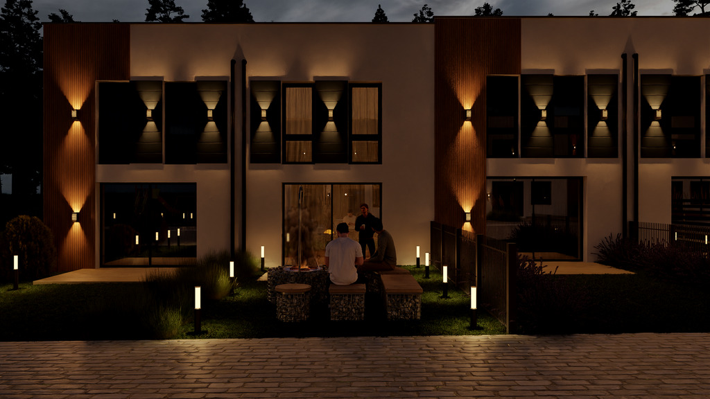 - Każdy dom jest ogrodzony panelami 3D w kolorze antracyt