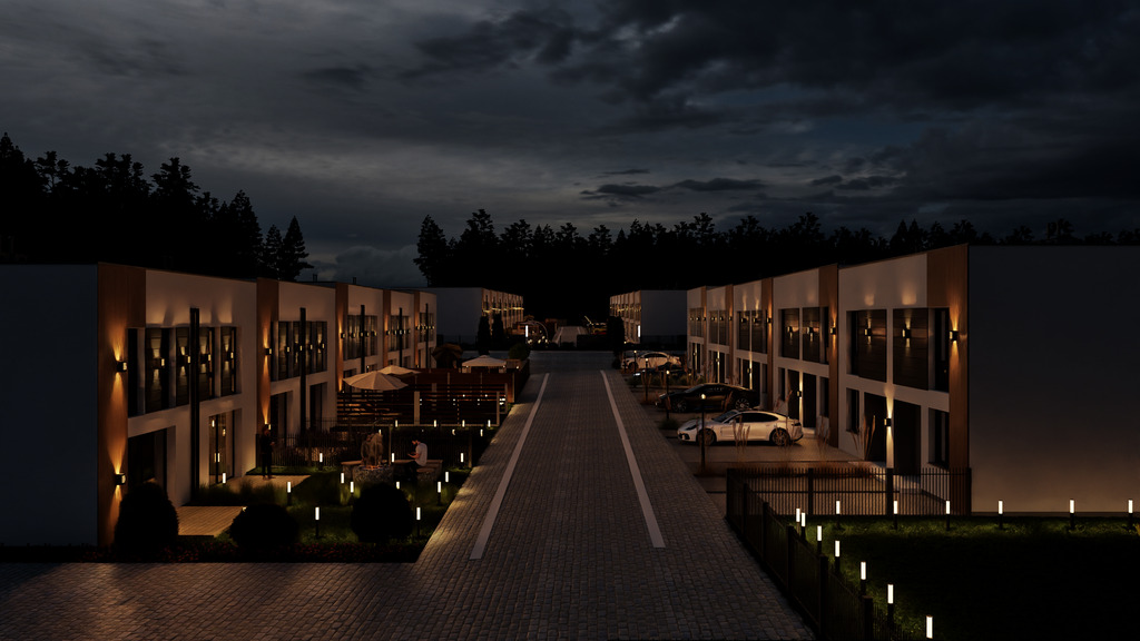 Projekt osiedla zakłada 33 domy szeregowe przy ul. Willowej w miejscowości Charzyno, w województwie zachodniopomorskim.