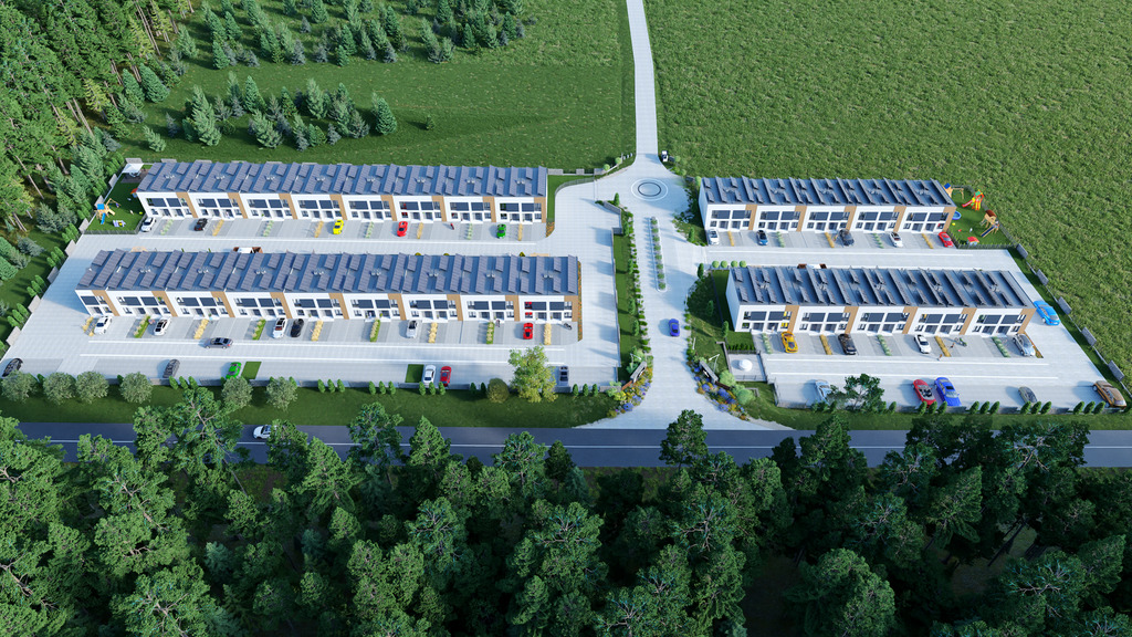 Nowa inwestycja, osiedle budynków mieszkalnych jednorodzinnych w zabudowie szeregowej.