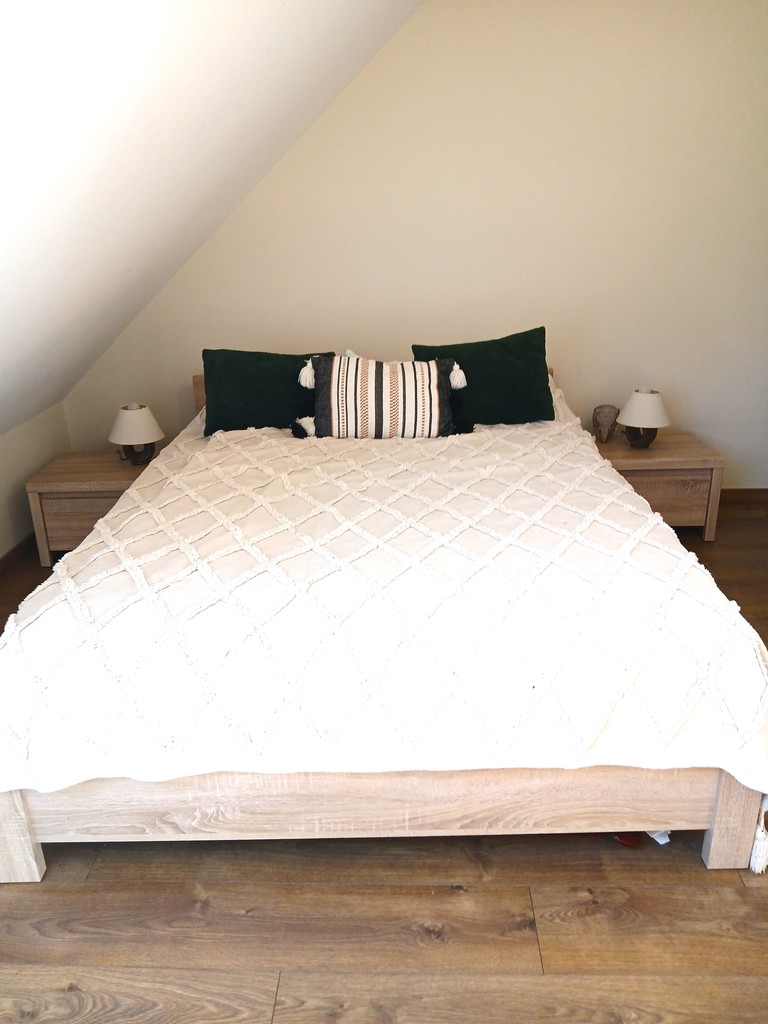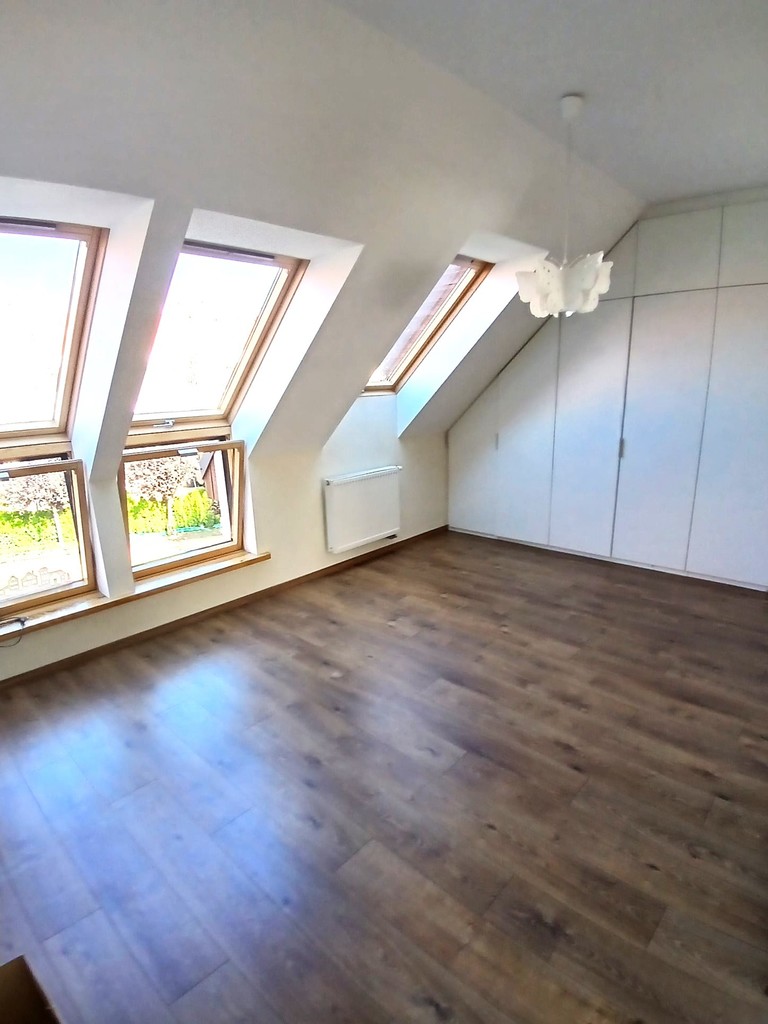 Na powierzchnię nieruchomości składa się przestronny salon z aneksem kuchennym, pokój z szafą w zabudowie oraz łazienka z wanną i prysznicem. Na drugim poziomie mieści się sypialnia oraz antresola.