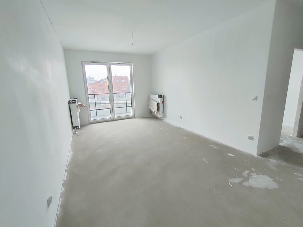 Na sprzedaż apartament trzypokojowy o powierzchni 57m2 wraz tarasem znajdujący się na czwartym piętrze z bezpośrednim widokiem na Podzamcze w nowoczesnym apartamentowcu w samym centrum miasta na Łasztowni.