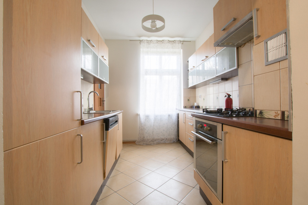 Aktualnie mieszkanie zostało opróżnione z mebli, została tylko stała zabudowa w kuchni.