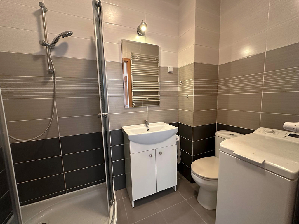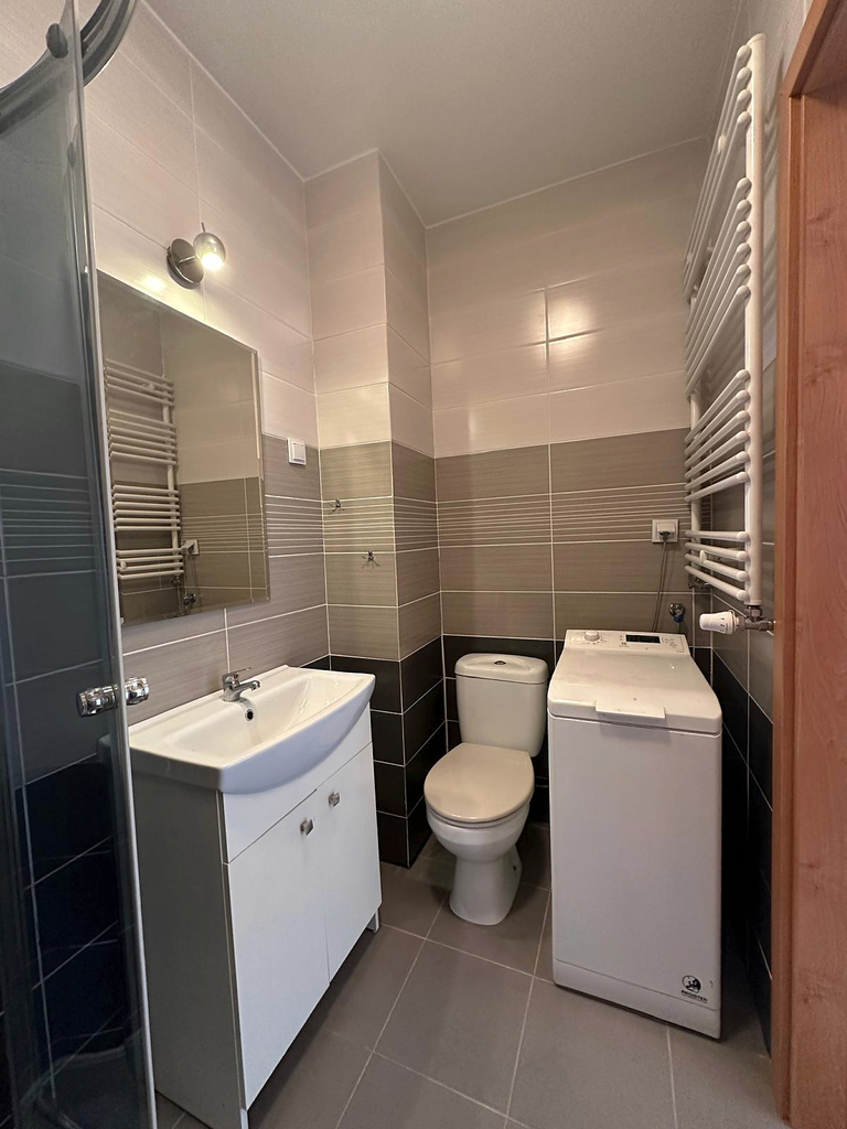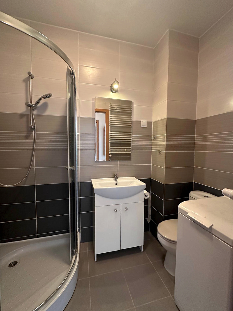 Mieszkanie zadbane. Ściany malowane, na podłogach w pokojach panele zaś w łazience ,korytarzu i kuchni płytki. Kuchnia wyposażona w podstawowe meble wraz ze sprzętem AGD ( w tym lodówka, kuchenka elektryczna z piekarnikiem, okap ). Salon ustawny, na wyposażeniu duża szafa, sofa, komoda oraz ława. Łazienka wyposażona w kabinę prysznicową, umywalkę, grzejnik drabinowy oraz pralkę.